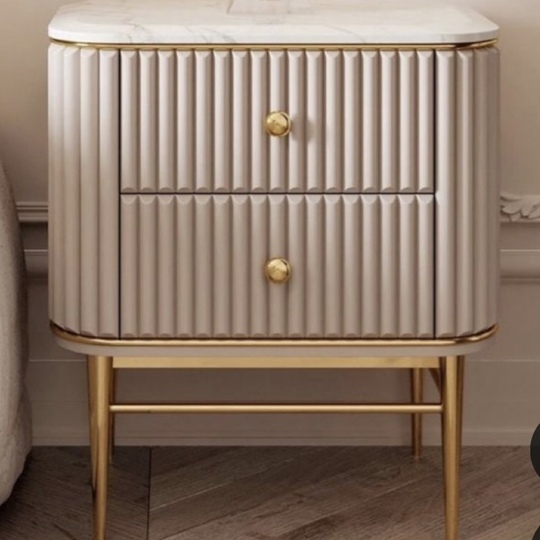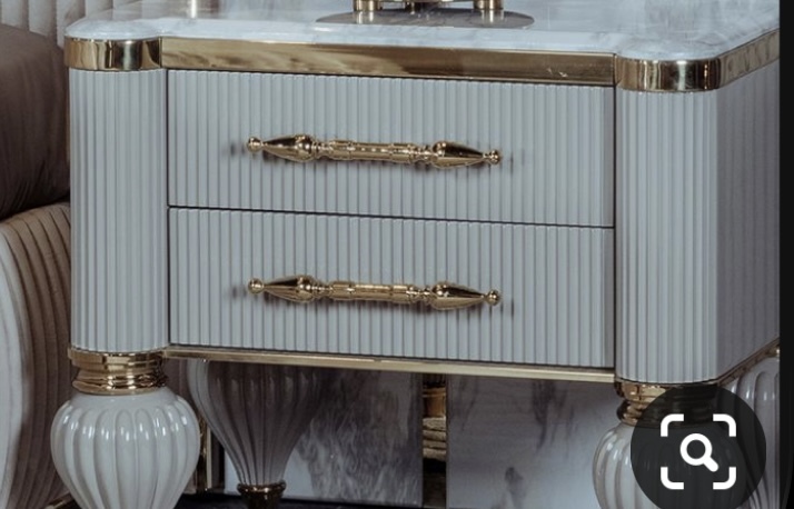 Reikalingi dvi, baltos spalvos, naktinės spintelės miegamajam. Baltos spalvos su aukso spalvos detalėmis.