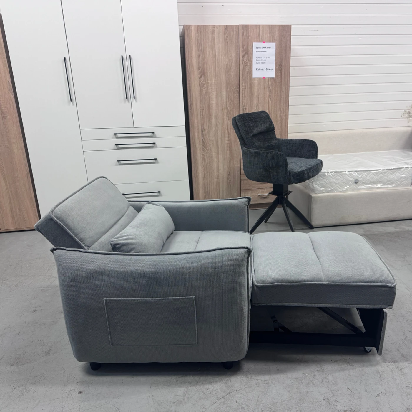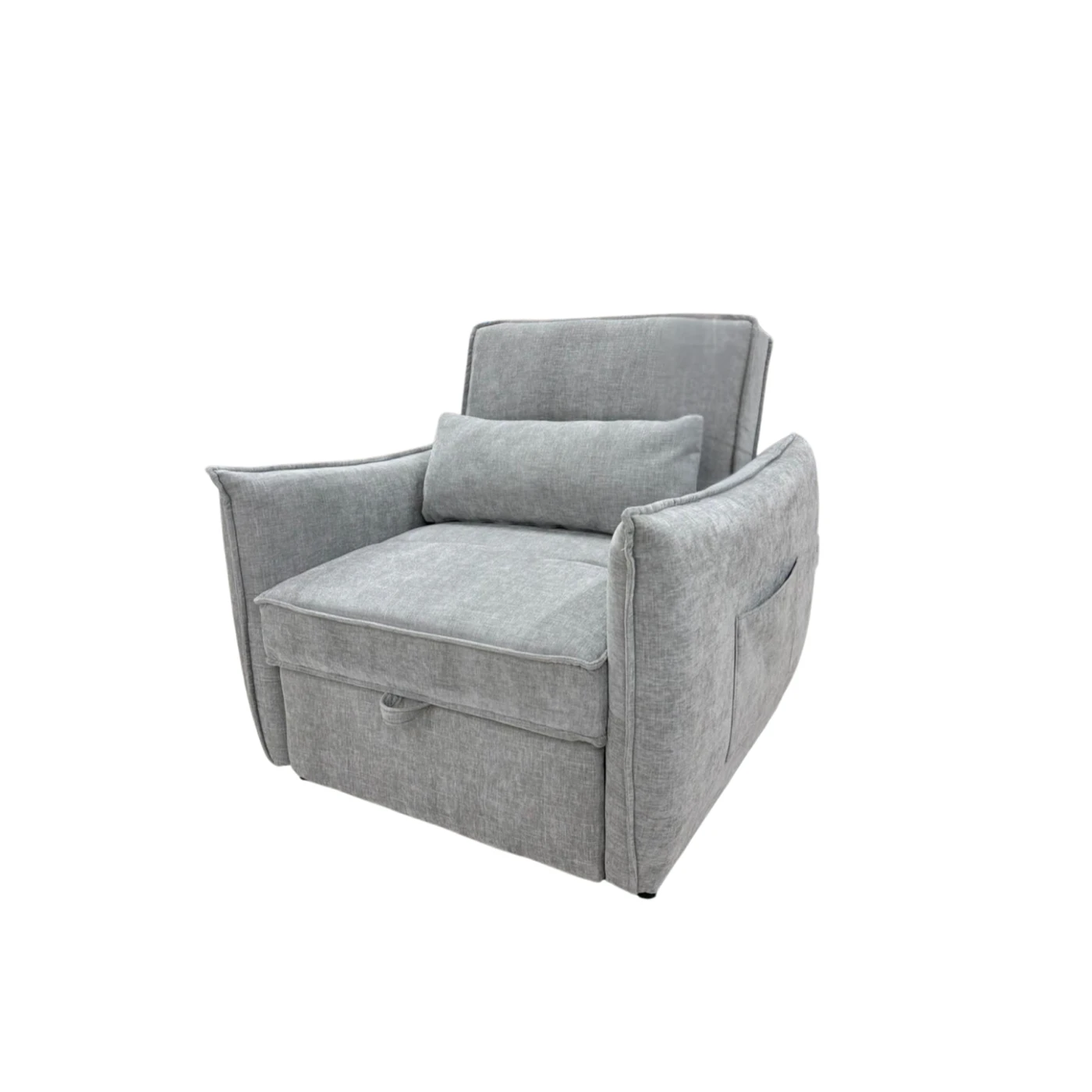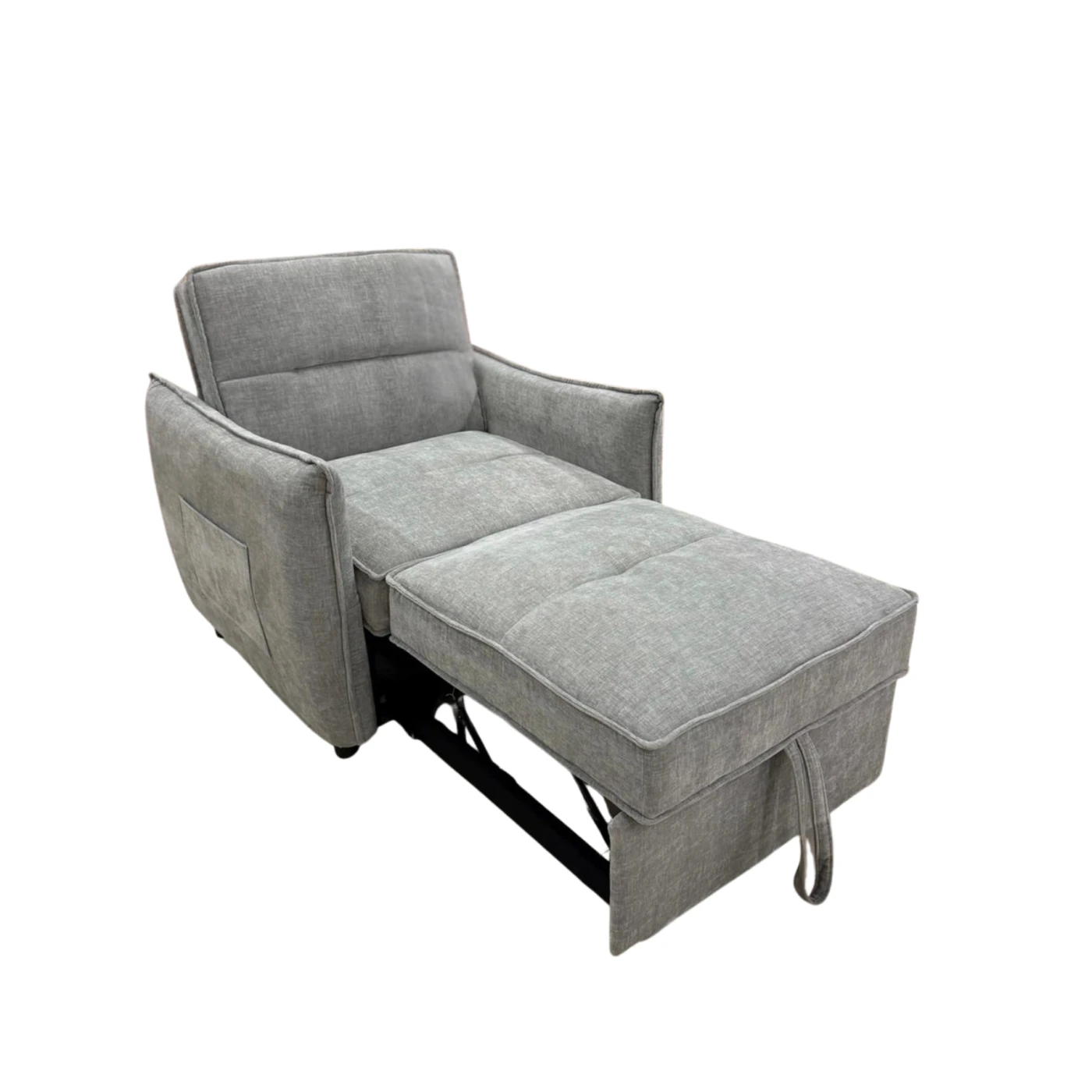Fotelis turi ištraukiamą miegamąją funkciją, kuri lengvai transformuojama į patogią lovą. Konstrukcija sukurta taip, kad fotelį būtų paprasta naudoti kasdien, o minkštas užpildas užtikrina komfortą tiek sėdint, tiek miegant.