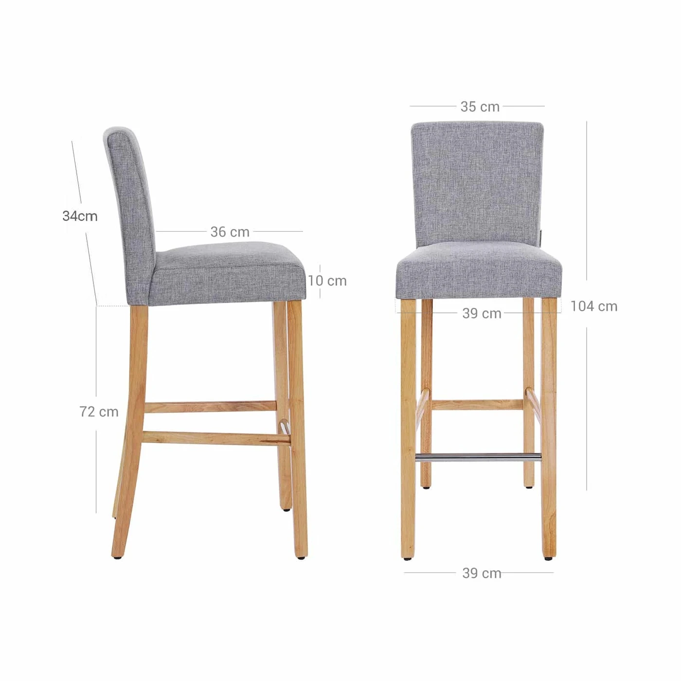 Aprašymas buvo automatiškai išverstas, gali pasitaikyti klaidų.Tikra klasika yra minkšta baro kėdė su atlošu. Dėl gražiai ir visiškai apmuštos atlošo ir sėdynės bei protingo sėdynės aukščio su pėdų atrama pasižymi didelis sėdėjimo komfortas, todėl valgydami ar gerdami galėsite atsipalaiduoti. Idealiai tinka prekystaliui, barui, svetainei, virtuvei ar sodo zonai! Išsami informacija apie gaminį: - Spalva: šviesiai pilka natūrali - Medžiaga: - Užvalkalas: medvilninis lininis audinys - Nugaros rėmas ir kojos: guminė mediena (lakuota skaidriu laku) - Sėdynės rėmas: pušies mediena - Sėdynės plokštė: fanera - Dydis: 39 x 51,5 cm x 99,5 cm (P x P x A) - sėdynės aukštis: 76 cm; sėdynės gylis: 36 cm; Sėdynės Plotis cm: 39 cm - Svoris: 6,15 kg/kėdė - Maksimali statinė apkrova: 110 kgPristatymo komplektas: - 2 x baro kėdės - 2 x priedų krepšiai - 1 x instrukcijos (DE, EN, IT, FR, ES) SONGMICS Pastabos: - Siekiant ilgalaikio stabilumo ir saugumo, patartina reguliariai tikrinti ir priveržti būklę. iš varžtų. Pakartotinis surinkimas ir išmontavimas taip pat nerekomenduojamas.Sėdėdami niekada nesiūbuokite, o visos 4 kojos neturi pakilti nuo žemės.