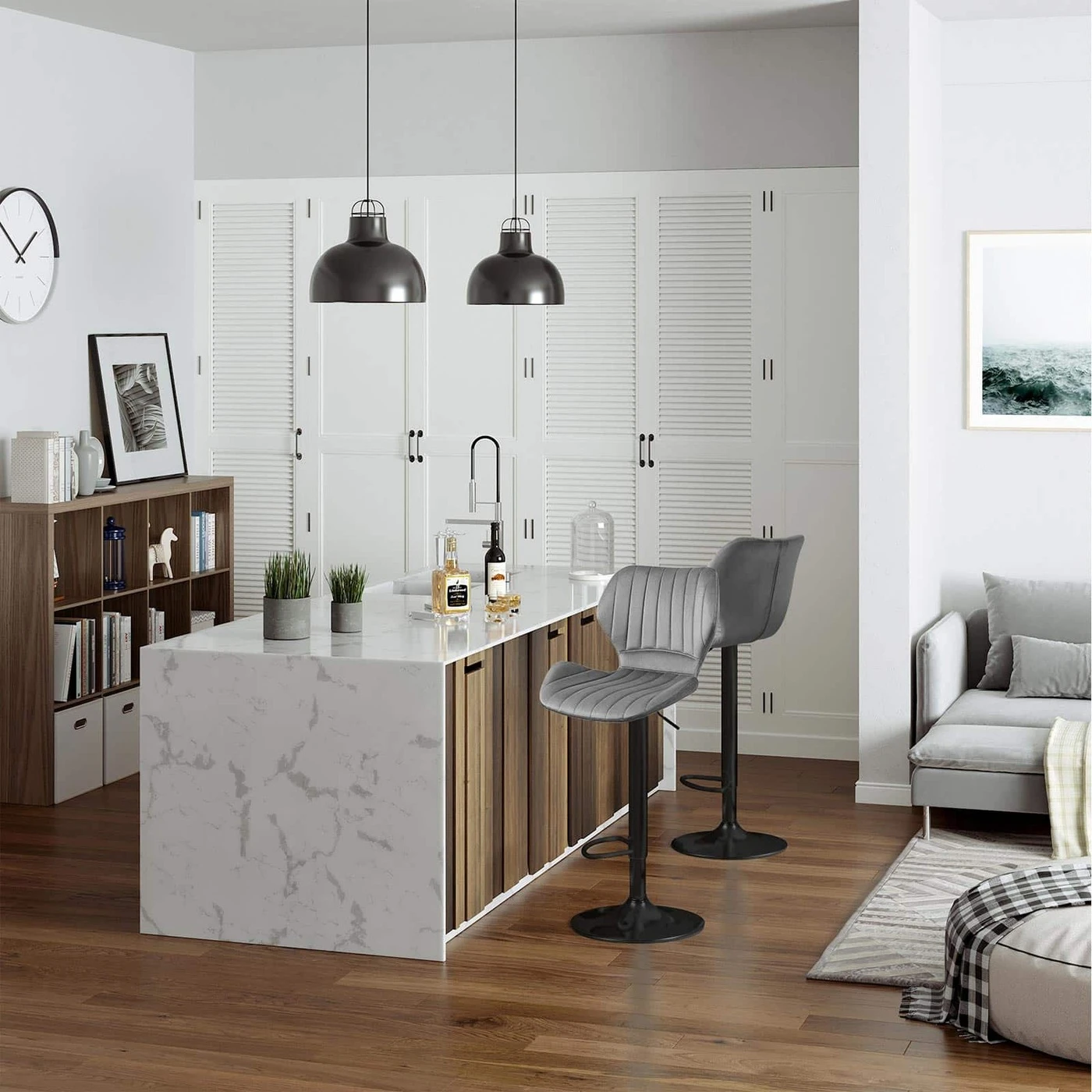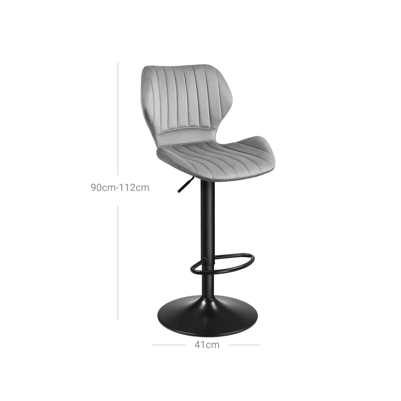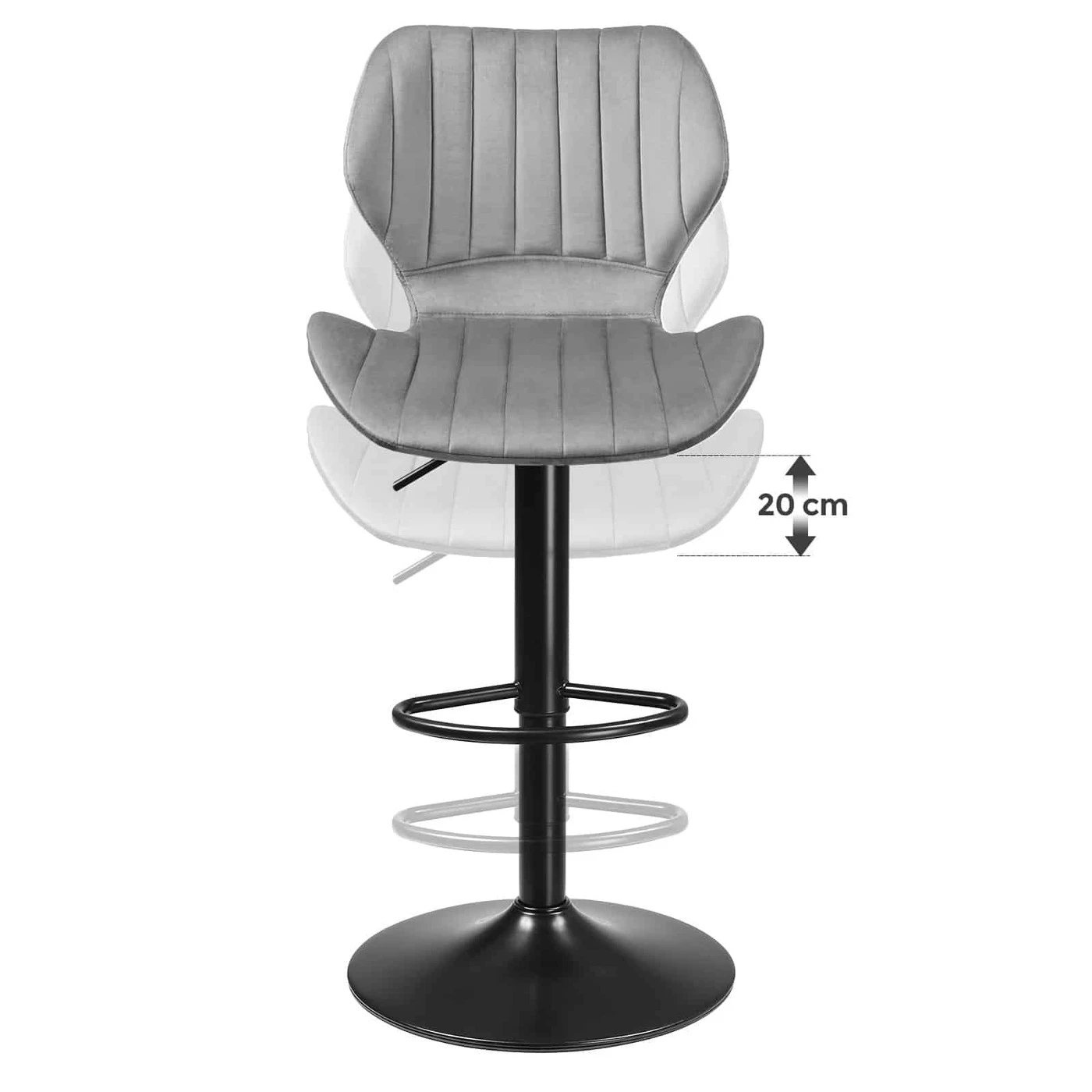 Aprašymas buvo automatiškai išverstas, gali pasitaikyti klaidų.Pasitaikyk! Ar per daug dirbote pastarosiomis savaitėmis? Tada išnaudokite savaitgalį ir atsisėskite su geru draugu! Geriausias būdas tai padaryti yra prie baro stalo, kuris nuo šiol spindės šiomis akį traukiančiomis baro kėdėmis. Ergonomiškos formos sėdynės apvalkalas ir praktiška pėdų atrama užtikrina aukštą sėdėjimo komforto lygį, kad apie senus laikus būtų galima kalbėti iki vėlumos. Geriau saugoti, nei gailėtis Naudojame ypač patvarius automatinio sugrįžimo cilindrus, kad šios kėdės nesvyruotų ir kad galėtumėte be problemų reguliuoti sėdynės aukštį. Jie buvo išbandyti SGS ir atitinka BIFMA X5.1 standartą (bandymo ataskaitos Nr.: AJHL200400841FT; savininkas: tiekėjas).Informacija apie gaminį:- Spalva: Šviesiai pilka- Medžiaga: Aksomas, metalas- Gaminio matmenys: Bendras dydis: 48 x 52 x (90-112) cm (P x P x A) Sėdynės aukštis: 57-79 cm Sėdynės Plotis cm: 35 cm Sėdynės gylis: 39 cm aukštis Atlošo Plotis cm:33 cm Atlošo Plotis cm:43 cm Kojos atramos aukštis:20-42 cm Pagrindo skersmuo:41 cm- Svoris: 6,2 kg- Maksimali statinė apkrova: 120 kg Pakuotės turinys:- 2 x Baro kėdė- 2 x Priedų paketas- 1 x Instrukcijos (DE, EN, ES, FR, IT) SONGMICS Pastabos: Saugumo sumetimais vaikams neleidžiama lipti ant gaminio ar žaisti su juo.