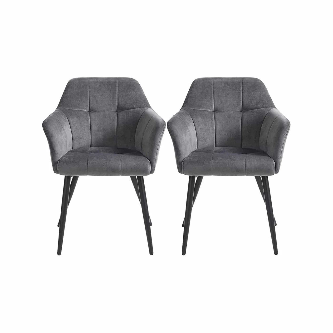Aprašymas buvo automatiškai išverstas, gali pasitaikyti klaidų.Išbandykite jaukumą: Ergonomiškas dizainas, 8 cm storio putplasčio paminkštinimas, kokybiškas aksominis užvalkalas ir patvarios metalinės kojelės, atlaikančios iki 110 kg – šie elementai sukuria tvirtas ir patogias kėdes. Dar geriau, kad kėdės yra gražios išvaizdos, kuri įneša malonią atmosferą į bet kurį kambarį.Visada šalia jūsų: kad ir kur norėtumėte sėdėti ir atsipalaiduoti, šios kėdės jums paruoštos. Nesvarbu, ar valgomajame, svetainėje, miegamajame, darbo kambaryje ar deginantis balkone, šios kėdės visada tiks poilsio akimirkoms.Informacija apie gaminį: Spalva: pilka Medžiaga: metalinės kojelės, medinė plokštė, aksomas, putplasčio paminkštinimas Dydis: 61 x 60 x 86,5 cm (P x P x A) Sėdynės aukštis: 50 cm Sėdynės Plotis cm: 44 cm Sėdynės gylis: 44 cm Atlošo aukštis : 46,5 cm Porankio aukštis (nuo grindų): 68,5 cm Vienos kėdės svoris: 6,5 kgMaks. Vienos kėdės statinė apkrova: 110 kg Pakuotės turinys: 2 x Kėdė 2 x Priedų paketas 2 x Instrukcijos SONGMICS Pastabos: Nestovėkite ant kėdės ir nenaudokite jos kaip pagalbinės kopėčios ar kopėčių. Nedelsdami nuvalykite kėdę sausa šluoste, jei ji sušlapo tapo. Padėkite kėdę ant lygaus paviršiaus. Grindų kilimėlis po kėde gali apsaugoti jūsų parketą.