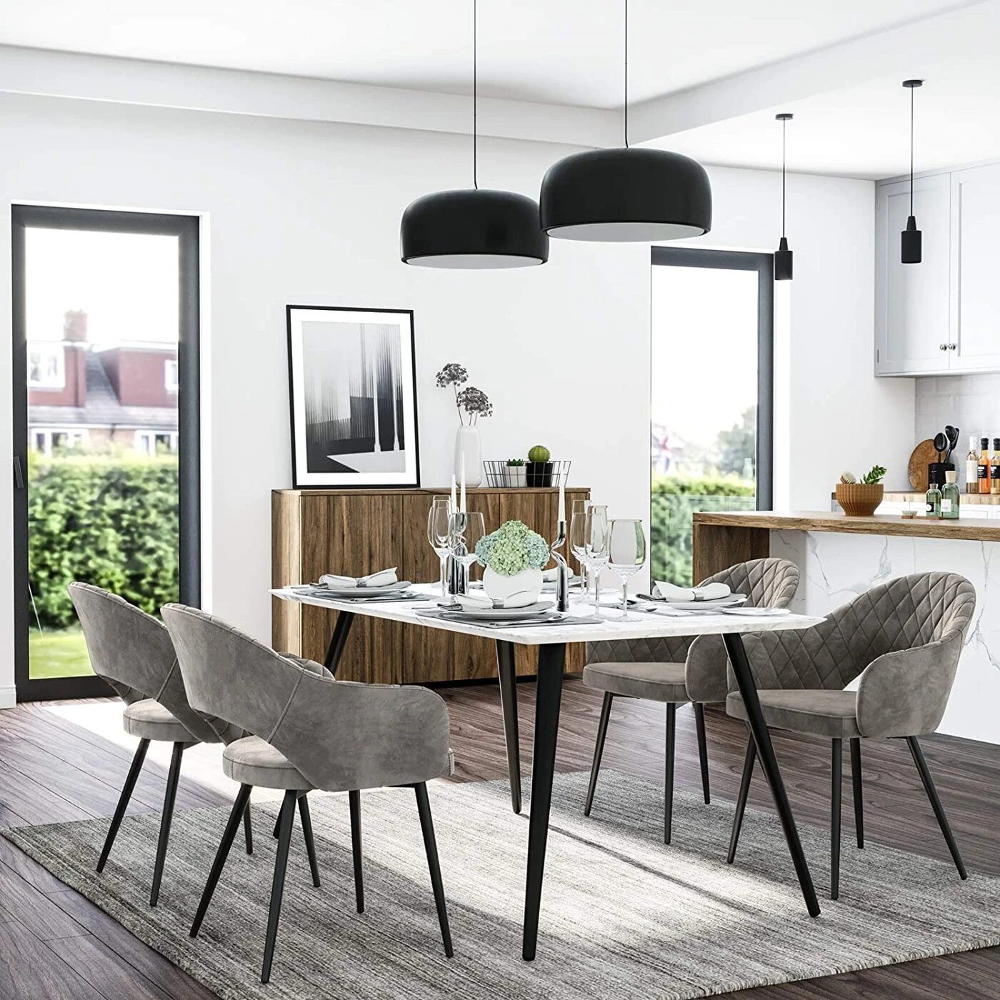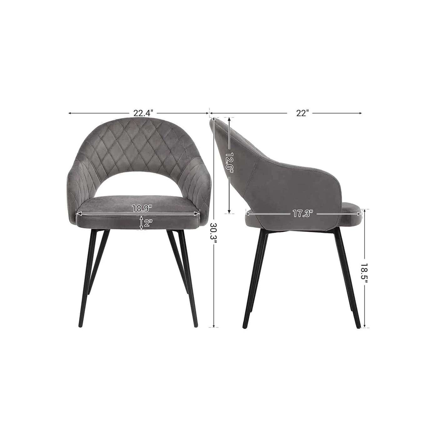 Aprašymas buvo automatiškai išverstas, gali pasitaikyti klaidų.Išsami informacija apie gaminį: Spalva: pilka Medžiaga: milteliniu būdu dengta geležis, medinė lenta, aksomas, putplastis Bendras dydis: 57 x 56 x 77 cm (P x P x A) Atstumas tarp sėdynės ir grindų: 47 cm Sėdynės Plotis cm: 48 cm Gylis sėdynės: 44 cm Atlošo aukštis: 32 cm Atstumas tarp porankių ir grindų: 61 cm Sėdynės pagalvėlės storis: 5 cm Svoris: 6 kgMaks. statinė apkrova: 110 kg Pristatymo komplektas: 2 x valgomojo kėdės 2 x priedų komplektas 2 x instrukcijosSONGMICS Pastabos: Nelaikykite šio gaminio tiesioginiuose saulės spinduliuose. Saugokite šį gaminį nuo smailių ir aštrių daiktų, kad nepažeistumėte paviršiaus. Nestokite ant šios kėdės. Be to, nenaudokite jos kaip laipiojimo pagalbinės priemonės ar kopėčių. Nedelsdami nuvalykite šią kėdę sausai, jei ji sušlaptų. Padėkite šį gaminį ant lygaus paviršiaus, susijusio su gamybos procesu. Nemėginkite jo atidaryti.