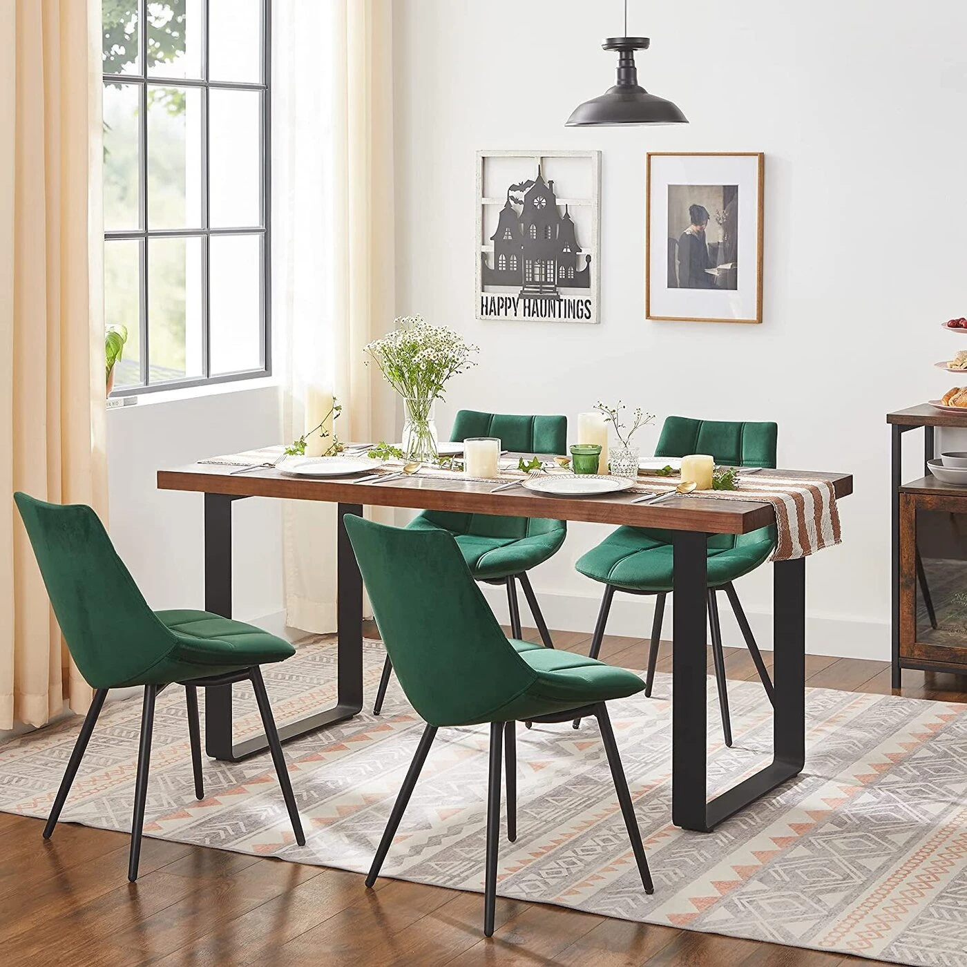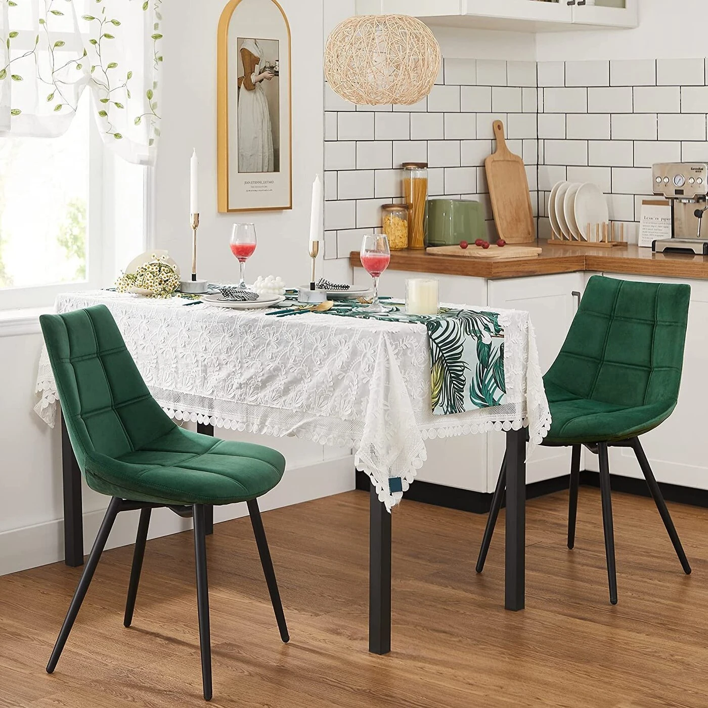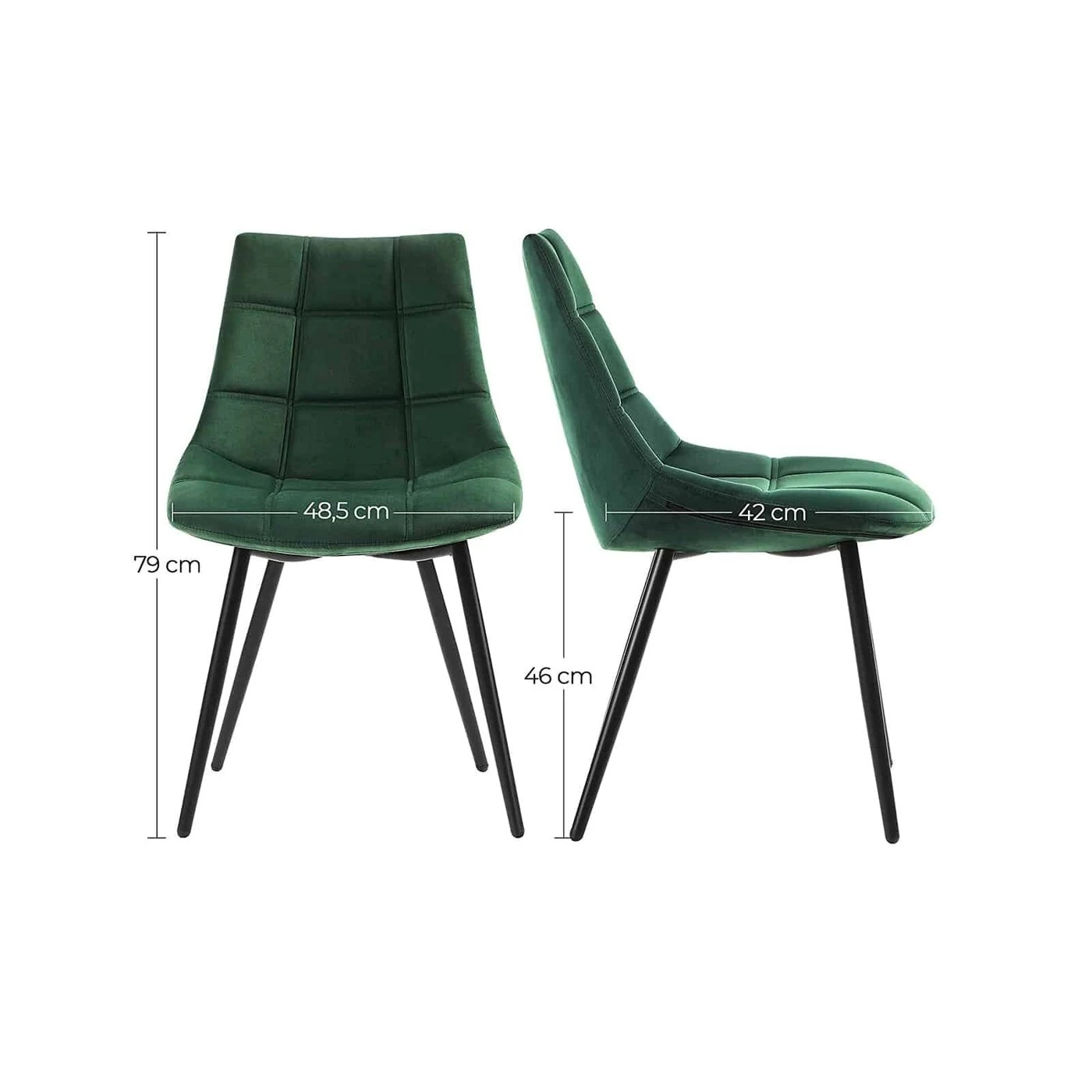 Aprašymas buvo automatiškai išverstas, gali pasitaikyti klaidų.Stilius su komfortu: gražus fasadas neturėtų būti svarbesnis už komfortą. Su šiuo rinkiniu, kurį sudaro 2 aksomu dengtos valgomojo kėdės, gausite 2 šiuolaikiškus, puikų sėdėjimo komfortą siūlančius gultus Visada šalia: 5 cm storio putplasčio paminkštinimas, aukštos kokybės aksominis užvalkalas, ergonomiškos formos sėdynės apvalkalas – šios minkštos kėdės yra nenugalimas visiems, ieškantiems minkštų ir patogių Ieškokite valgomojo sėdimų vietų. Atsisėskite ant vienos iš šių kėdžių ir ramiai išgerkite kavos ryte arba mėgaukitės šaltais gėrimais karštomis vasaros dienomis. Be to, šios virtuvės kėdės turi 4 tvirtas geležines kojeles, kurios užtikrina didelę statinę apkrovą (iki 110 kg) Išsami informacija apie gaminį: Spalva: žalia Medžiaga: milteliniu būdu dengtas metalas, polipropilenas (PP), aksomas Bendras dydis: 48,5 x 54 x 79 cm (P x P x A) Sėdynės aukštis: 46 cm Sėdynės Plotis cm: 48,5 cm Sėdynės gylis: 42 cm Atlošo aukštis: 33 cm Storas sėdynės paminkštinimas: 5 cm Vienos kėdės svoris: 5,5 kg Maks. statinė vienos kėdės apkrova: 110 kgPakuotės turinys: 2 x valgomojo kėdė 2 x aksesuarų komplektas 1 x instrukcijos SONGMICS Pastabos: Saugokite gaminį nuo tiesioginių saulės spindulių. Saugokite gaminį nuo smailių ar aštrių daiktų, kad nesugadintumėte. Nestokite ant kėdės ir nenaudokite jos kaip laipiojimo priemonė arba kopėčios. Jei kėdė sušlapo, nedelsdami nuvalykite ją sausa šluoste. Padėkite kėdę ant lygaus paviršiaus.