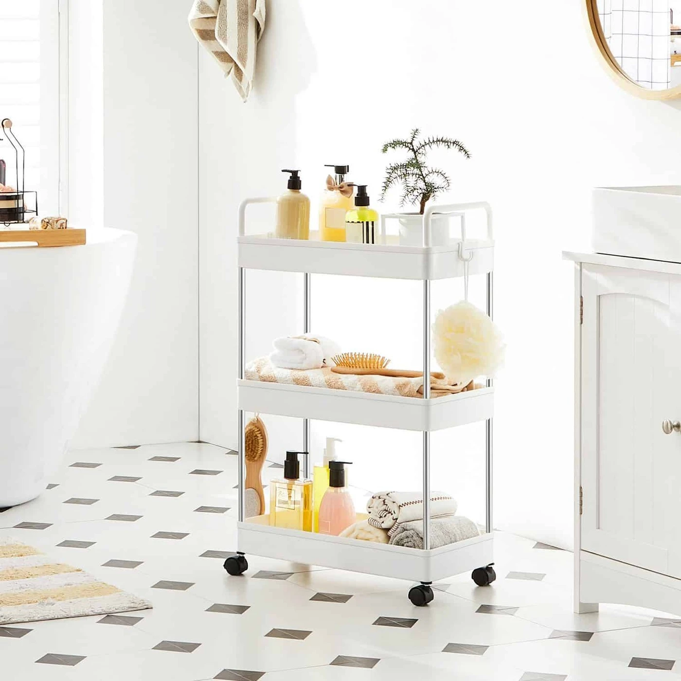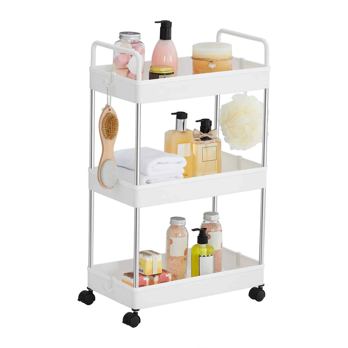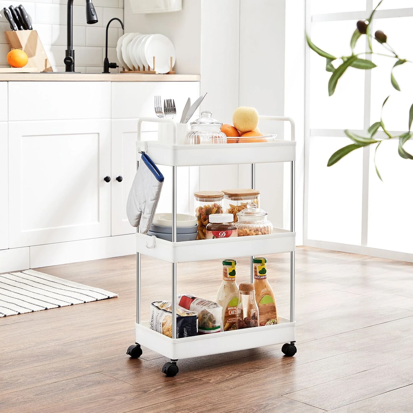 Aprašymas buvo automatiškai išverstas, gali pasitaikyti klaidų. Informacija apie gaminį: - Spalva: balta - Medžiaga: nerūdijantis plienas, PP (polipropilenas) - Bendras dydis: 40 x 22 x 67 cm (P x P x A) - Svoris: 1,2 kg - Maksimali statinė apkrova vienam lygiui: 5 kg pristatymas: - 1 x vežimėlis - 6 x kabliukai - 1 x instrukcijosSONGMICS Pastabos: - Sunkesnius daiktus laikykite apatinėje lentynoje ir tolygiai padėkite arba pakabinkite ant kiekvienos pakopos, kad neapvirstumėte. - Montuodami nespauskite vamzdelių galų tiesiai rankomis, kad nesusižeistumėte.