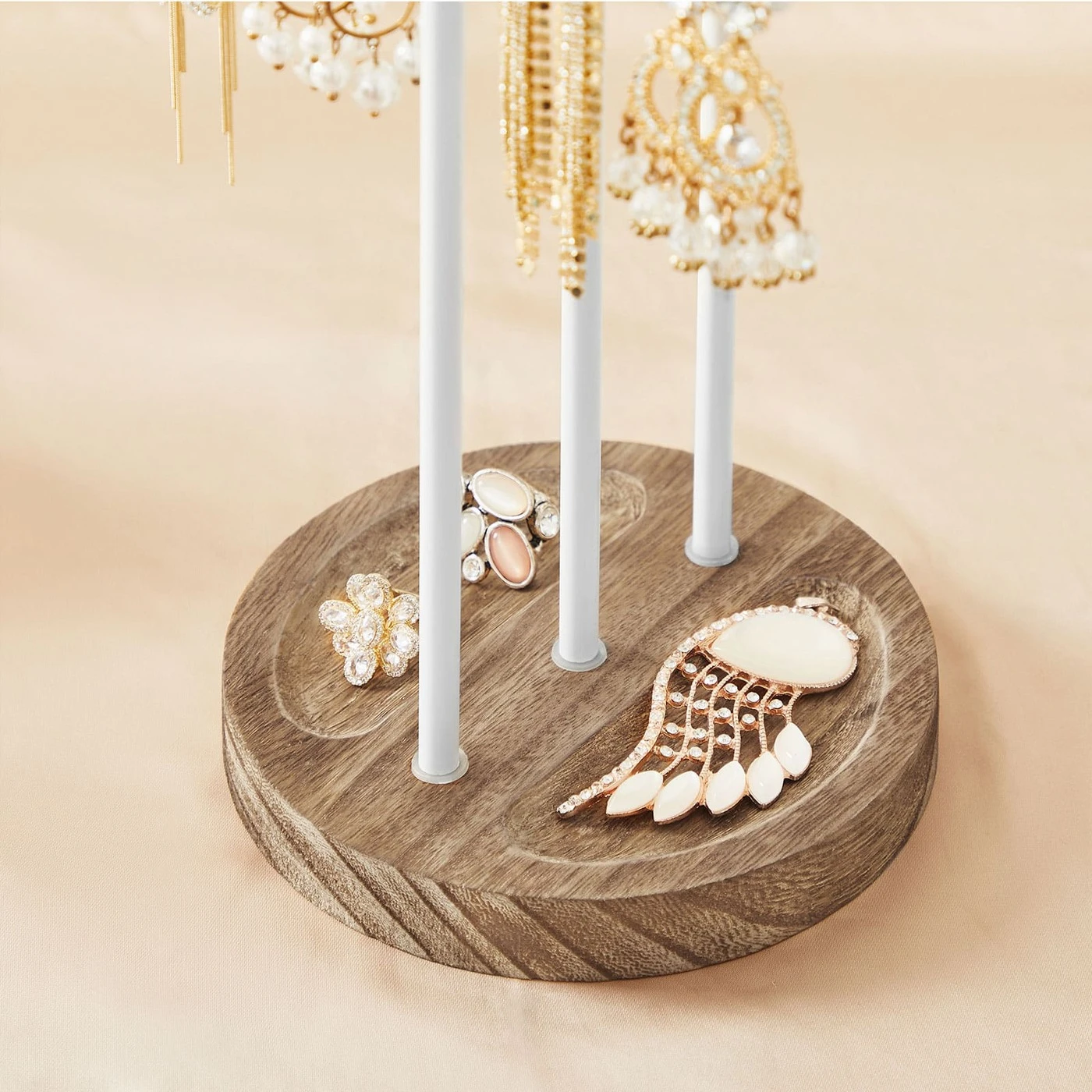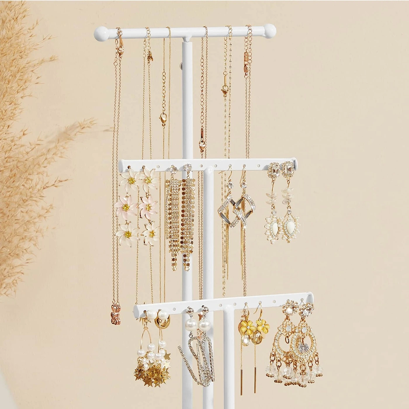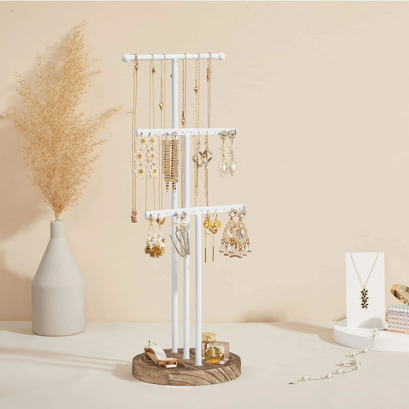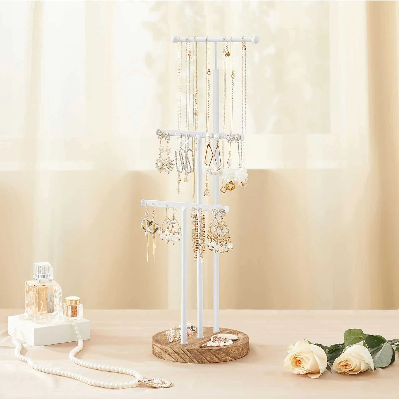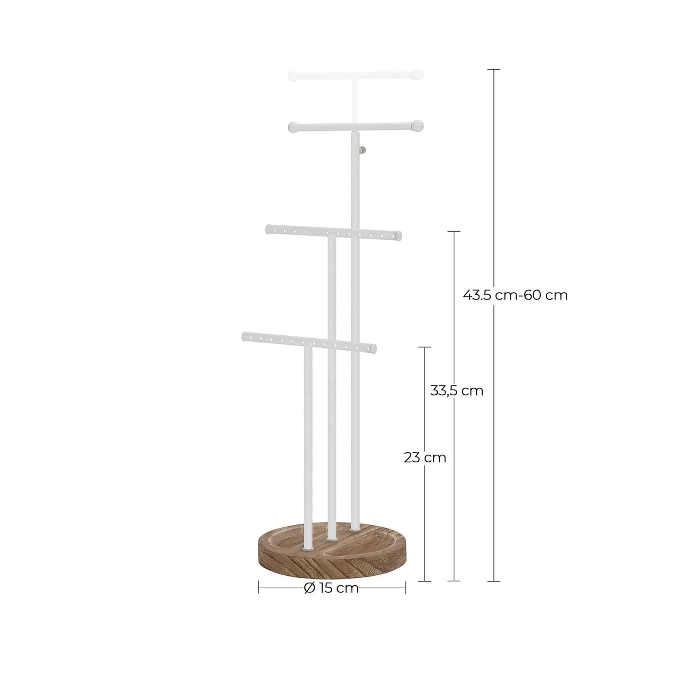 Aprašymas buvo automatiškai išverstas, gali pasitaikyti klaidų.Vienas papuošalų stovas, trys privalumai: 3 tvirti plieniniai strypai, kurių vieno aukštis reguliuojamas ilgesniems kaklaraiščiams ir kaklo papuošalams. Kitose dviejose strypuose yra 24 skylės auskarams. 1 medžio masyvo stovas veikia kaip padėklas smulkiems lobiams, tokiems kaip sagės ir pakabukai. Trys žingsniai į putojantį gyvenimą: įkiškite 3 strypus į stovą ir padėkite šį papuošalų laikiklį ant tualetinio staliuko ar komodos miegamajame. Pakabinkite mėgstamus karolius, apyrankes, laikrodžius, auskarus ir žiedus, kuriuos branginate. Pasigrožėkite putojančiu brangakmeniai ir deimantai ant šio papuošalų laikiklio.Prekės informacija: Spalva: medžio-balta Medžiaga: mediena, plienas Dydis: 15 x 15 x (43,5-60) cm (P x P x A) Svoris: 0,4 kg Pakuotės turinys: 1 x papuošalų stovas 1 x priedų pakuotė 1 x instrukcija SONGMICS Pastabos: Jei naudojate Norėdami reguliuoti stulpo aukštį, pirmiausia turite atlaisvinti vertikalaus stulpo varžtą.
