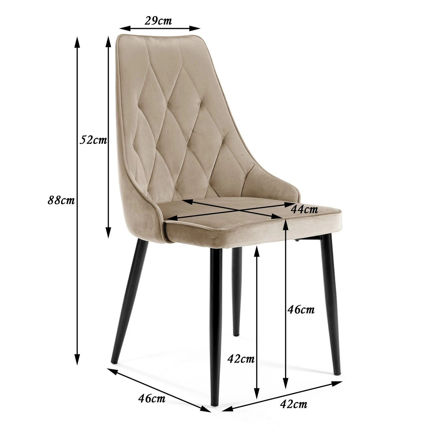 Aprašymas buvo automatiškai išverstas, gali pasitaikyti klaidų. Šiuolaikinis dizainas ir vyraujančios tendencijos rodo, kad veliūras yra nuostabi ir praktiška medžiaga. Tokią savo kėdžių seriją norėtume pasiūlyti kaip modernaus ir stilingo interjero papildymą. SJ.054 kėdė turi juodas metalines kojas. Tokios kojos tinka tiek klasikiniam dekorui, tiek modernioms kompozicijoms. Sėdynę ir atlošą juosia veliūriniai apmušalai, kurių dėka fotelis yra malonus liesti ir nesukelia diskomforto vasaros dienomis. Apmušalams naudojamas dygsniuotas audinys suteikia dar elegantiškesnę išvaizdą ir nesenstantį stilių. Kėdė parduodama komplektais – vienoje pakuotėje 4 vnt.