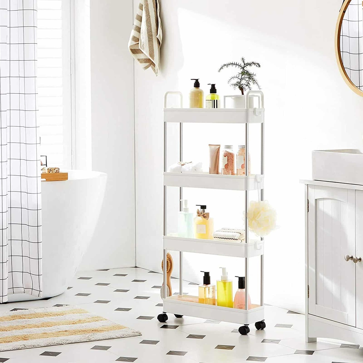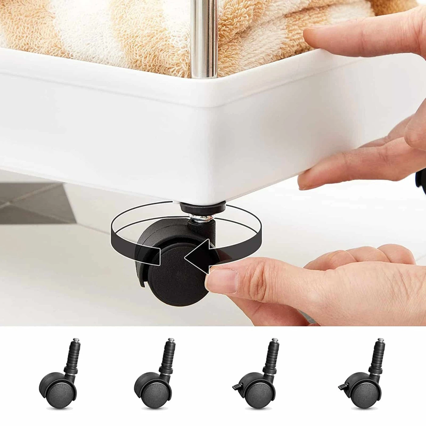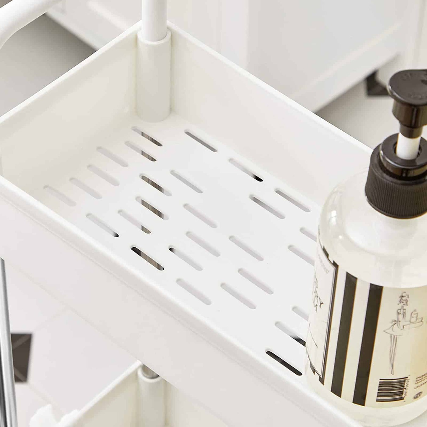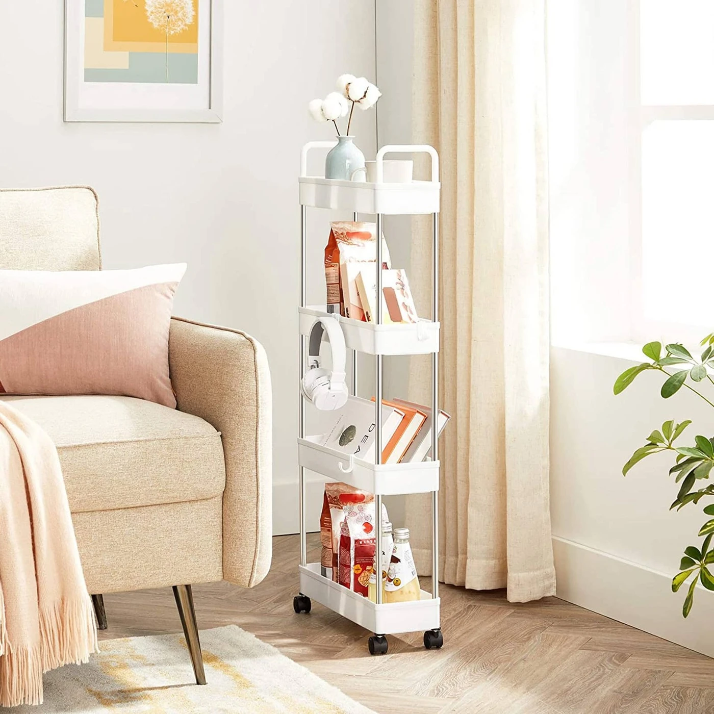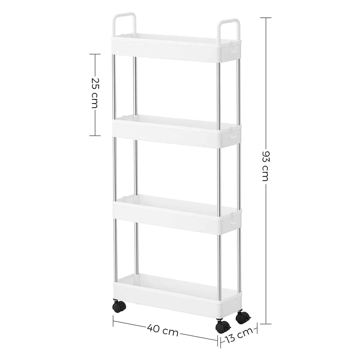 Aprašymas buvo automatiškai išverstas, gali pasitaikyti klaidų.Šalia savo prekystalio: Padėkite prieskonius, padažus, kepimo aliejus ir kitus dažniausiai naudojamus maisto gaminimo ingredientus ant šios virtuvės lentynos ir įstumkite į nedidelę nišą, esančią šalia savo prekystalio. Taigi druska, pipirai ir alyvuogių aliejus yra paruošti, kai baigiate. Šalia vonios: pripildykite šią praktišką vonios lentyną vonios putomis, šampūnu ir rankšluosčiais, susukite ją šalia vonios ir šokite į karštą burbulinę vonią! Kitas prie skalbimo mašinos : Sudėkite ploviklius ir valymo priemones ant šio lankstaus vežimėlio ir pastumkite jį šalia skalbimo mašinos. Skalbimas yra tik pusė pastangų.Informacija apie gaminį: Spalva: balta Medžiaga: nerūdijantis plienas, PP (polipropilenas) Bendras dydis: 40 x 13 x 93 cm (P x P x A) Svoris: 1,3 kg Maks. Statinė apkrova vienam lygiui: 5 kg Pakuotės turinys: 1 x vežimėlis 6 x kabliukai 1 x instrukcijos (DE, EN, DE, FR, ES, IT) SONGMICS Pastabos: sunkesnius daiktus dėkite ant apatinės lentynos ir tolygiai dėkite arba pakabinkite kiekvienu lygiu aukštyn, kad neapvirstumėte.