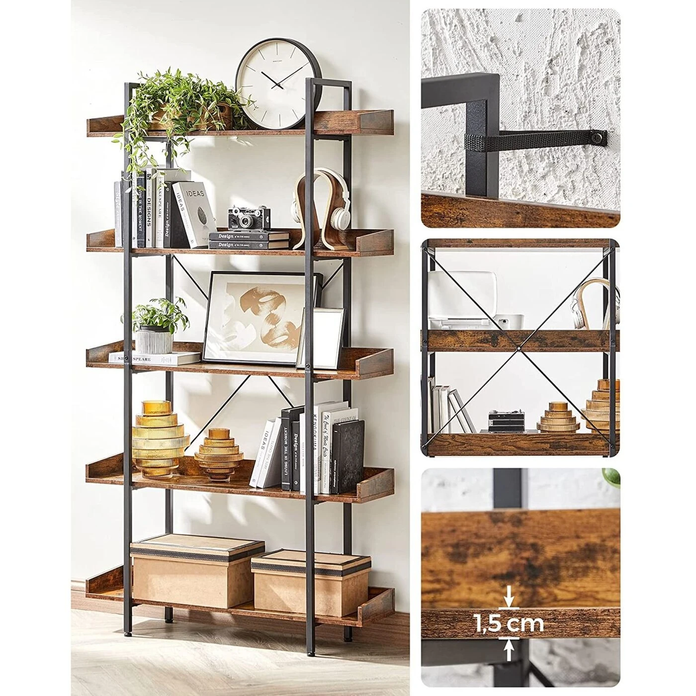 Aprašymas buvo automatiškai išverstas, gali pasitaikyti klaidų. Informacija apie gaminį: - Spalva: vintažinė ruda-juoda - Medžiaga: medžio drožlių plokštės, plienas - Dydis: 100 x 28 x 178 cm (P x P x A) - Atstumas tarp lentynų: 36 cm - Svoris: 19,7 kg - Maksimali statinė apkrova vienam lentynos lygiui: 36 kg - Maksimali bendra statinė apkrova: 180 kgPristatymo komplektas:- 1 x knygų lentyna- 1 x priedų pakuotė- 1 x apsauga nuo apvirtimo- 1 x instrukcijaVASAGLE Pastabos:- Saugumo sumetimais vaikams draudžiama lipti ant gaminio ar žaisti su juo.- Pritvirtinkite šį gaminį prie pateiktas apsaugos nuo apsivertimo įtaisas Siena.
