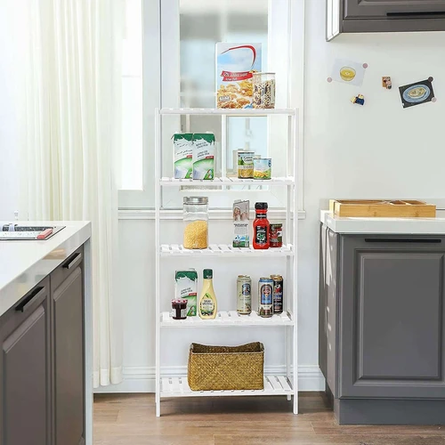 Aprašymas buvo automatiškai išverstas, gali pasitaikyti klaidų.Koks stilingas akcentas: Pagaminta iš natūralaus bambuko, ši moderni lentyna suteikia jūsų namams gaivumo. Įrengtas 5 reguliuojamų lentynų lygiai, jis taip pat siūlo lanksčią vietą daiktams laikyti, o dėl siauros formos sutaupysite daug vietos. Įsigykite šią universalią lentyną ir išlaisvinkite namus nuo chaoso! Su šia lentyna nieko negali nutikti: bambukas yra ne tik atsinaujinanti žaliava, bet ir tvirta, lengvai prižiūrima ir labai elastinga medžiaga. Pastatykite šią bambukinę lentyną ten, kur jos reikia, ir ji puikiai pravers sandėliuojant – svetainėje, darbo kambaryje, koridoriuje, virtuvėje, balkone ir pan.Informacija apie gaminį: Spalva: balta Medžiaga: bambukas Dydis: 60 x 26 x 130 cm (P x P x A) Svoris: 5,76 kg Maks. Statinė apkrova vienoje lentynoje: 10 kg Pristatymo komplektas: 1 x bambukinė lentyna su 5 lygiais 1 x apsauga nuo apvirtimo 1 x konteineris su priedais 1 x instrukcijos (DE,EN,FR,ES,IT)SONGMICS Pastabos:Šis gaminys turi būti pritvirtintas prie sienos su pateikta apsauga nuo apvirtimo, kad neapvirstų. Kasdieniniam valymui nuvalykite gaminį drėgna šluoste.
