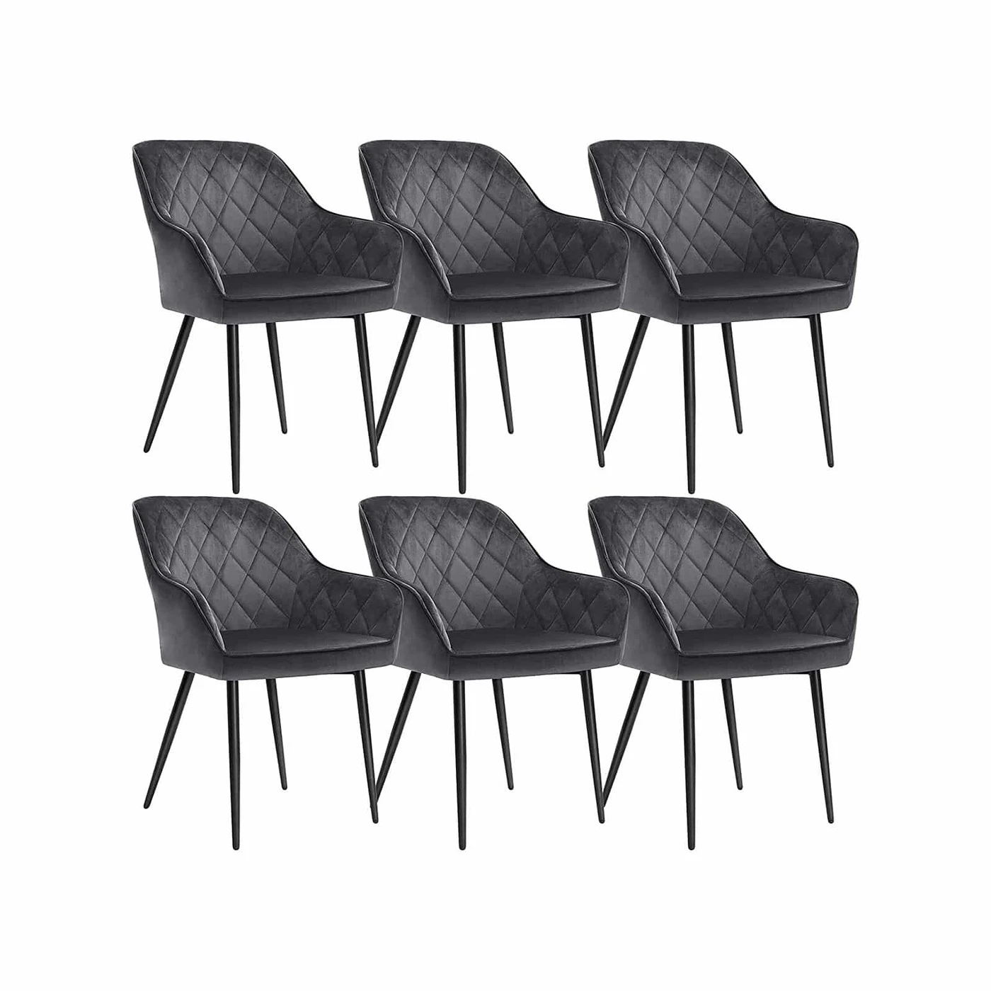 Aprašymas buvo automatiškai išverstas, gali pasitaikyti klaidų.Išbandykite patogiai: Ergonomiškas dizainas, 7 cm storio putplasčio paminkštinimas, aukštos kokybės aksominis užvalkalas ir patvarios metalinės kojelės, kurių apkrova iki 110 kg – šie elementai sukuria tvirtas ir patogias kėdes. Dar geriau, kad kėdės yra gražios išvaizdos, kuri suteikia malonią atmosferą bet kokiam kambariui.Visada šalia jūsų: kad ir kur norėtumėte sėdėti ir atsipalaiduoti, šios minkštos kėdės jums paruoštos. Nesvarbu, ar valgomajame, svetainėje, miegamajame, darbo kambaryje ar deginantis balkone, šios kėdės visada tiks poilsio akimirkoms.Išsami informacija apie gaminį: Spalva: Pilka Medžiaga: Milteliniu būdu dengtos metalinės kojelės, medinis viršus, aksomas, putplasčio paminkštinimas Kėdės dydis: 62,5 x 60 x 85 cm (P x P x A) Sėdynės aukštis: 50 cm Sėdynės Plotis cm: 49 cm Sėdynės gylis : 44,5 cm Atlošo aukštis: 39,5 cm porankių aukštis (nuo žemės): 64 cm Sėdynės pagalvėlės storis: 7 cm Svoris: 6,5 kgMaks. Vienos kėdės statinė apkrova: 110 kg Į pakuotę įtraukta: 6 x kėdė 6 x priedų paketas 6 x instrukcijos SONGMICS Pastabos: Saugokite gaminį nuo tiesioginių saulės spindulių. Saugokite gaminį nuo smailių ar aštrių daiktų, kad nesugadintumėte. Neatsistokite kėdes ir nenaudokite jų kaip laipiojimo pagalbinių priemonių ar kopėčių. Jei kėdės sušlapo, nedelsdami nuvalykite jas sausa šluoste. Padėkite kėdes ant lygaus paviršiaus. Grindų kilimėlis po kėdėmis gali apsaugoti jūsų parketą.