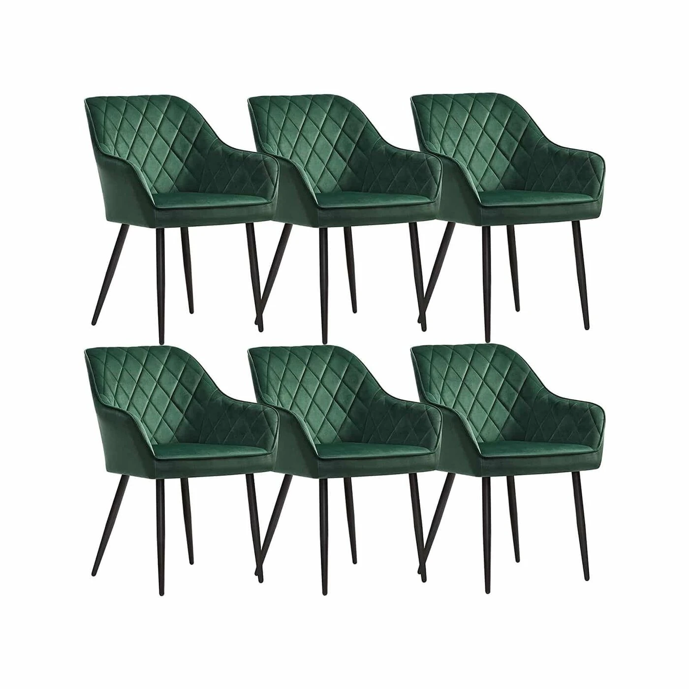 Aprašymas buvo automatiškai išverstas, gali pasitaikyti klaidų.Išbandykite patogiai: Ergonomiškas dizainas, 7 cm storio putplasčio paminkštinimas, aukštos kokybės aksominis užvalkalas ir patvarios metalinės kojelės, kurių apkrova iki 110 kg – šie elementai sukuria tvirtas ir patogias kėdes. Dar geriau, kad kėdės yra gražios išvaizdos, kuri suteikia malonią atmosferą bet kokiam kambariui.Visada šalia jūsų: kad ir kur norėtumėte sėdėti ir atsipalaiduoti, šios minkštos kėdės jums paruoštos. Nesvarbu, ar valgomajame, svetainėje, miegamajame, darbo kambaryje ar deginantis balkone, šios kėdės visada tiks poilsio akimirkoms.Išsami informacija apie gaminį: Spalva: Žalia Medžiaga: Milteliniu būdu dengtos metalinės kojelės, medinis viršus, aksomas, putplasčio paminkštinimas Kėdės dydis: 62,5 x 60 x 85 cm (P x P x A) Sėdynės aukštis: 50 cm Sėdynės Plotis cm: 49 cm Sėdynės gylis : 44,5 cm Atlošo aukštis: 39,5 cm porankių aukštis (nuo žemės): 64 cm Sėdynės pagalvėlės storis: 7 cm Svoris: 6,5 kgMaks. Vienos kėdės statinė apkrova: 110 kg Į pakuotę įtraukta: 6 x kėdė 6 x priedų paketas 6 x instrukcijos SONGMICS Pastabos: Saugokite gaminį nuo tiesioginių saulės spindulių. Saugokite gaminį nuo smailių ar aštrių daiktų, kad nesugadintumėte. Neatsistokite kėdžių ir nenaudokite jų kaip pagalbinių laipiojimo priemonių ar kopėčių.Jei sušlaptų, nedelsdami nuvalykite kėdes sausu skudurėliu. Padėkite kėdes ant lygaus paviršiaus. Grindų kilimėlis po kėdėmis gali apsaugoti jūsų parketą.