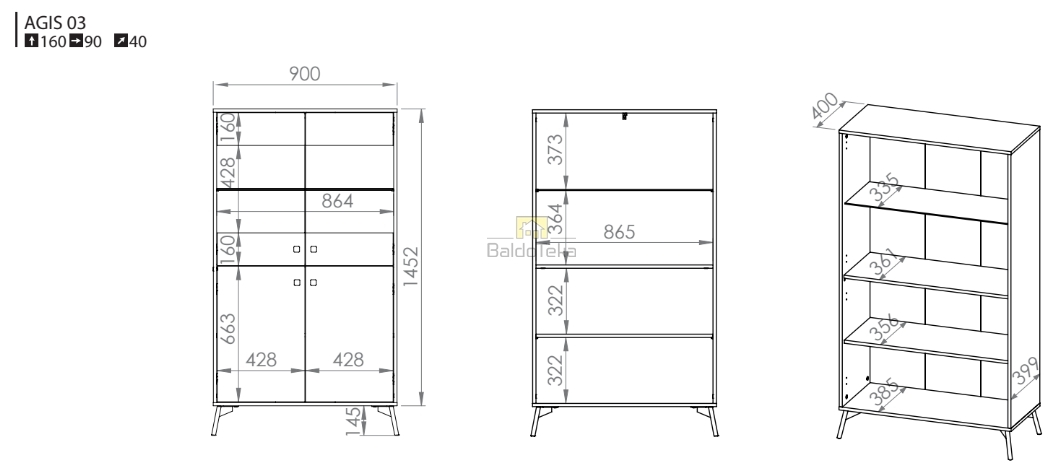 Plotis/Aukštis/Gylis: 90/160/40 cm.
