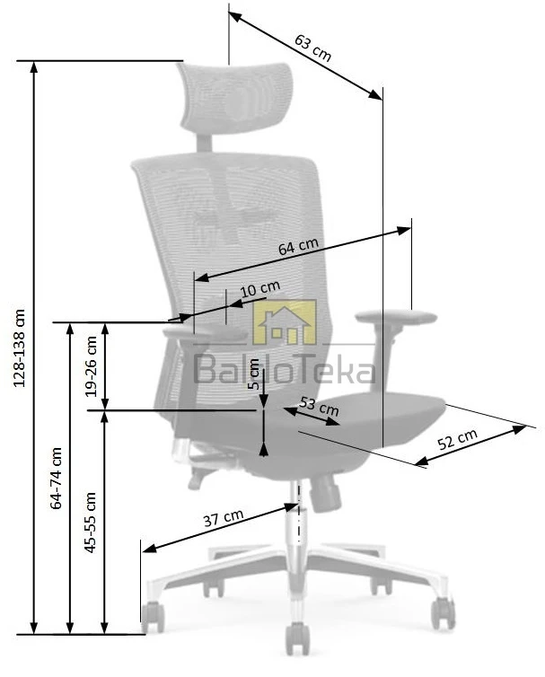 Aukštis/Plotis/Gylis: 45÷55 x 120÷130/64/63 cm.