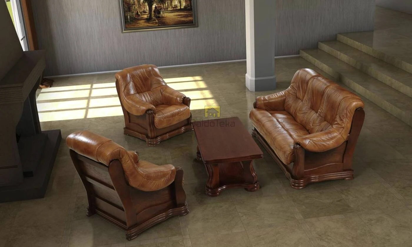 Natūralios odos ir ąžuolo masyvo, aukštos kokybės, minkšti ir prabangūs baldai.
