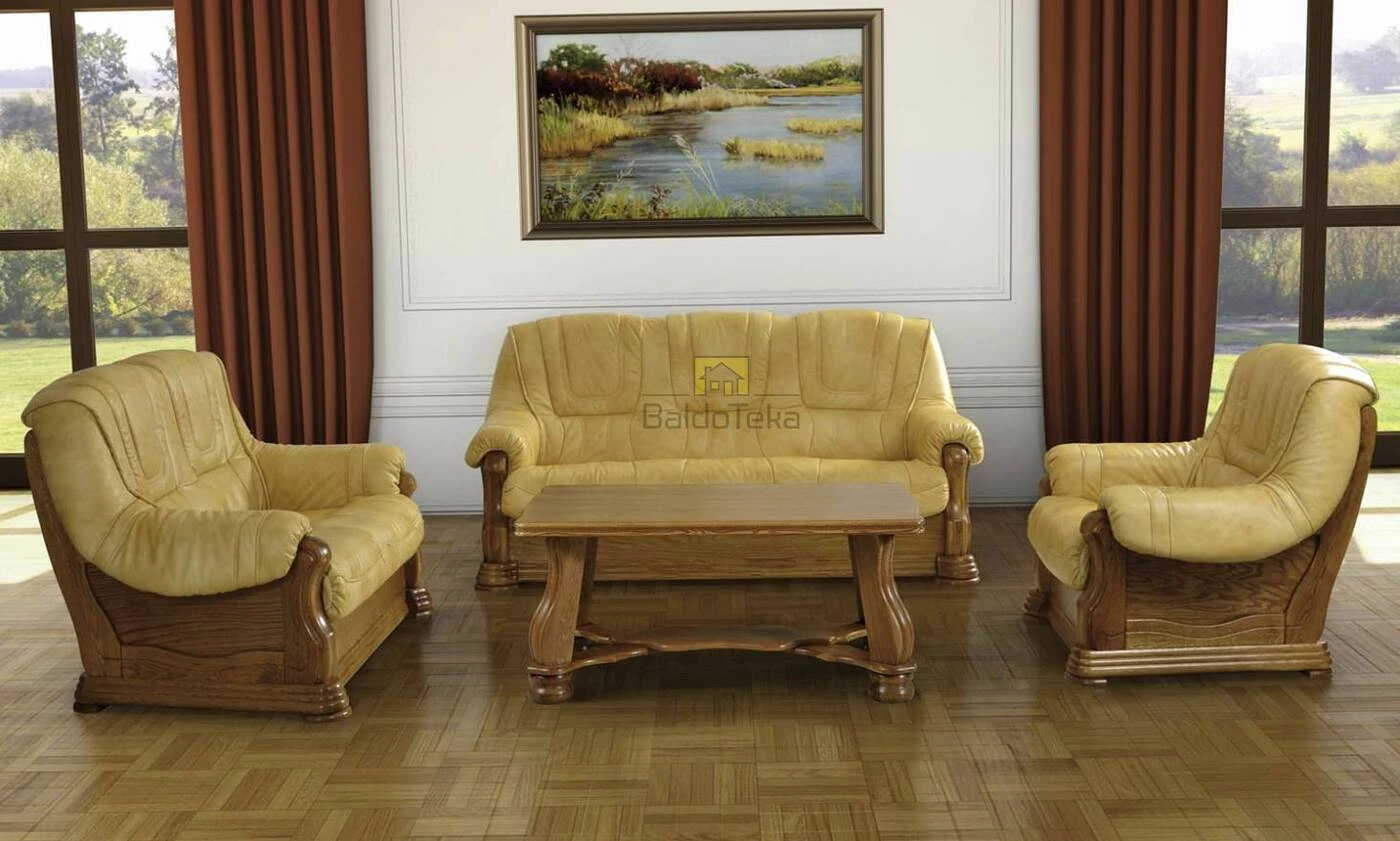Natūralios odos ir ąžuolo masyvo, aukštos kokybės, minkšti ir prabangūs baldai.