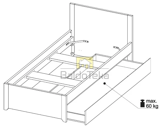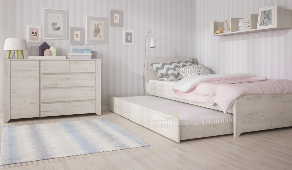 Stalčius po lova gali būti naudojamas kaip patalynės dėžė arba kaip antra lovytė.