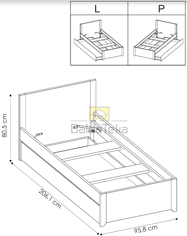 Lovos rėmo Ilgis/Plotis/Aukštis: 206,1/95,8/80,5 cm.
