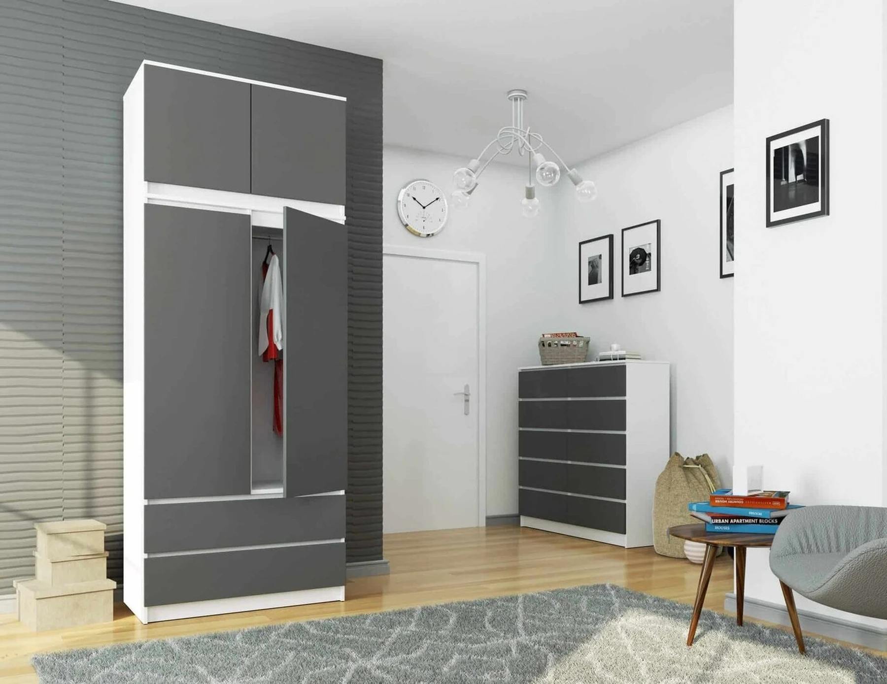 Aprašymas buvo automatiškai išverstas, gali pasitaikyti klaidų. Spintos prailginimas S 90 cm, kuris yra balto ir pilko grafito derinys, yra praktiškas sprendimas, skirtas daugeliui patalpų. Jis, be kita ko, bus naudojamas biure, prieškambaryje ar miegamajame, kur papildys garderobą, suteiks papildomos vietos įvairių rūšių prekėms laikyti. Pateiktame gaminyje yra dvi erdvios lentynos. Tai aukštos kokybės gaminys, pasižymintis paprastu, nesenstančiu dizainu. Baldai galimi ir kitų spalvų, iš kurių kiekvienas, susidomėjęs pasiūlymu, galės išsirinkti labiausiai savo konkrečius poreikius atitinkantį sprendimą Baldai pagaminti iš Kronospan laminuotos plokštės; Fasadai pagaminti iš laminuotos plokštės, kuri yra atspari dilimui; Durų viduje yra dvi lentynos; Kraštai padengti ABS apvadu, užtikrinančiu aukštą apsaugą; Dėžutė skirta montuoti savarankiškai; Instrukcija yra pakuotėje; Produktui suteikiama 24 mėnesių garantija.