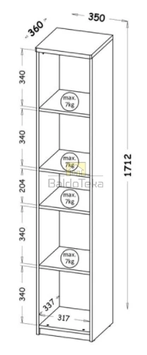 Plotis/Aukštis/Gylis: 35/171,2/36 cm.