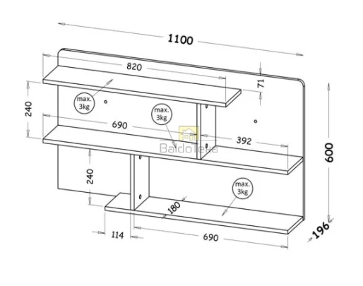 Plotis/Aukštis/Gylis: 110/60/19,6 cm.