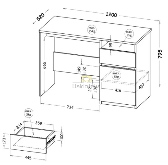 Plotis/Aukštis/Gylis: 120/79,5/52 cm.