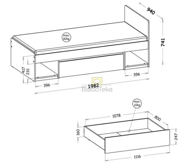 Lovos rėmo Plotis/Ilgis/Aukštis: 94/198,2/74,1 cm.