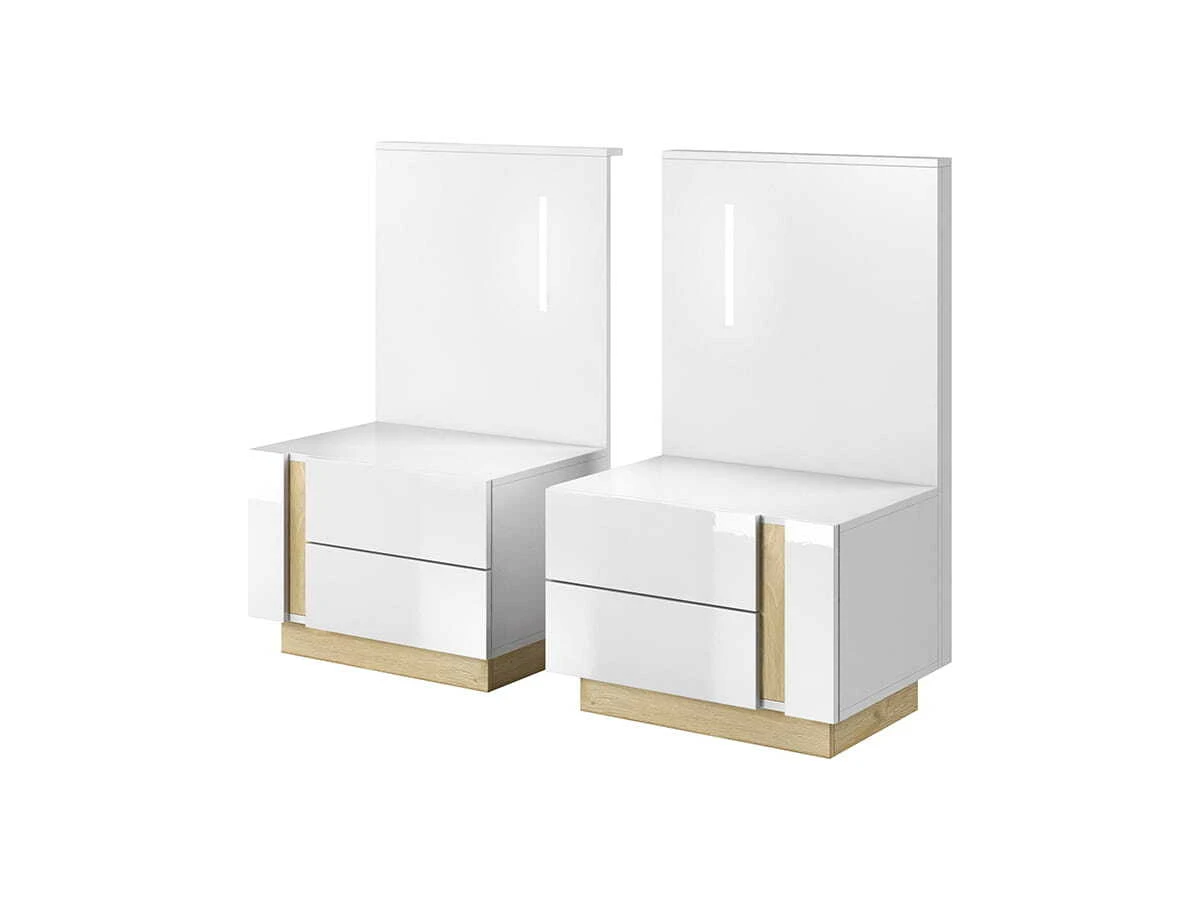 Modernios naktinės spintelės prie miegamojo lovos. Stalčiuose sutalpinsite smulkius daiktus, kuriuos visuomet norėsite pasiekti po ranka.