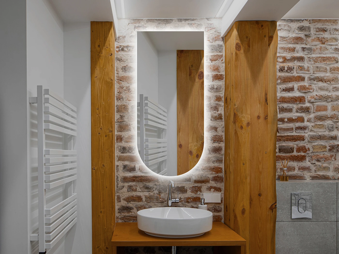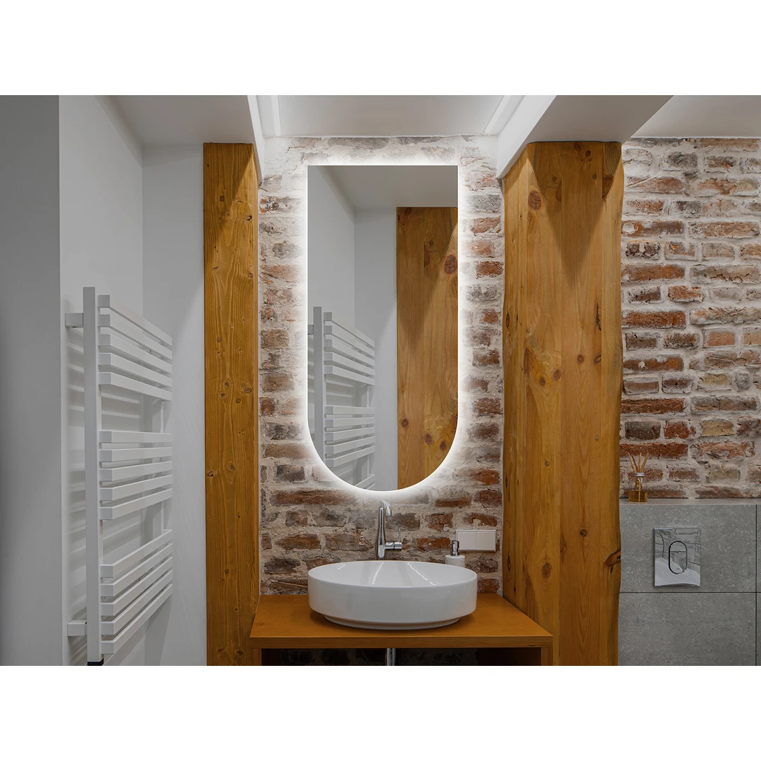 Apverstos arkos formos veidrodis su foniniu (nugariniu) LED apšvietimu.