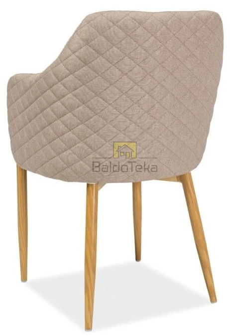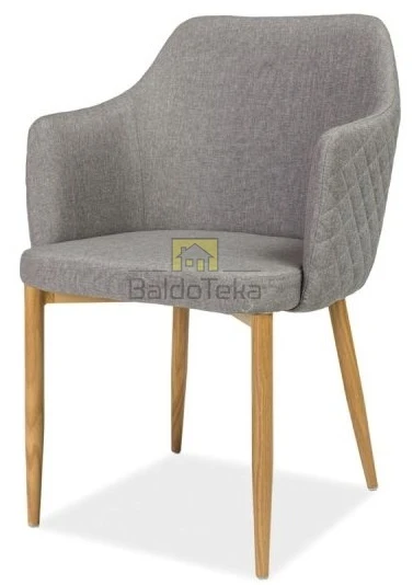 Elegantiški gobeleno ir metalo kėdės – pilka ir ąžuolo derinys