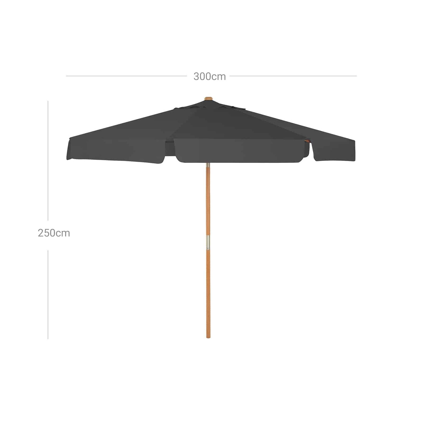 Aprašymas buvo automatiškai išverstas, gali pasitaikyti klaidų.Šilta saulė, mėlynas dangus, grynas oras, nuostabi gamta... Ko lauki? Laikas atsipalaiduoti sode! Bijote stiprių saulės spindulių? Nesijaudink. Tiesiog atidarykite šį SONGMICS skėtį ir mėgaukitės gražiu oru pavėsyje! Pagrindiniai šio skėčio privalumai: - Po šiuo Ø 3 m skėčiu telpa nuo 4 iki 6 žmonių - Puikiai apsaugo nuo UV spindulių iki UPF 50+ - Sulankstymo funkcija leidžia pakreipti sodo skėtį taip, kad jis visada būtų dešinėje vieta meta šešėlius - skėčio stulpas pagamintas iš tvirtos buko medienos - 8 skėčio šonkauliai pagaminti iš aukštos kokybės tvirtos kietmedžio - audinys nuo saulės, pagamintas iš 180 g/m² poliesterio audinio, žada ilgą tarnavimo laiką - skėtį galima lengvai atidaromas ir uždaromas praktišku laidu - skėčio stulpas pagamintas iš 2 strypų, kuriuos galima lengvai susukti - medinė konstrukcija suteikia jūsų sodui šilto prisilietimoPrekės informacija: - Spalva: pilka - Medžiaga: skėčio šakelė iš buko medienos, skėčio briaunelės iš kietmedžio, 180 g/m² poliesterio audinys - Aukštis: 2,5 m - Skėtis Ø: 3 m - Ø skėčio kotas: 48 mm - Svoris: 12 kg Pristatymo komplektacija: - 1 x skėčiukas- 1 x rankinis (DE, EN, FR, ES, IT) SONGMICS Pastabos:- Skėčio stovas neįeina.- Prašome neatidaryti skėčio jėga, bet švelniai ir lėtai. - Vėjuotomis dienomis uždarykite skėtį, kad nepažeistumėte.- Apsaugokite gaminį dangteliu (nepridedamas), kad užtikrintumėte ilgesnį tarnavimo laiką.