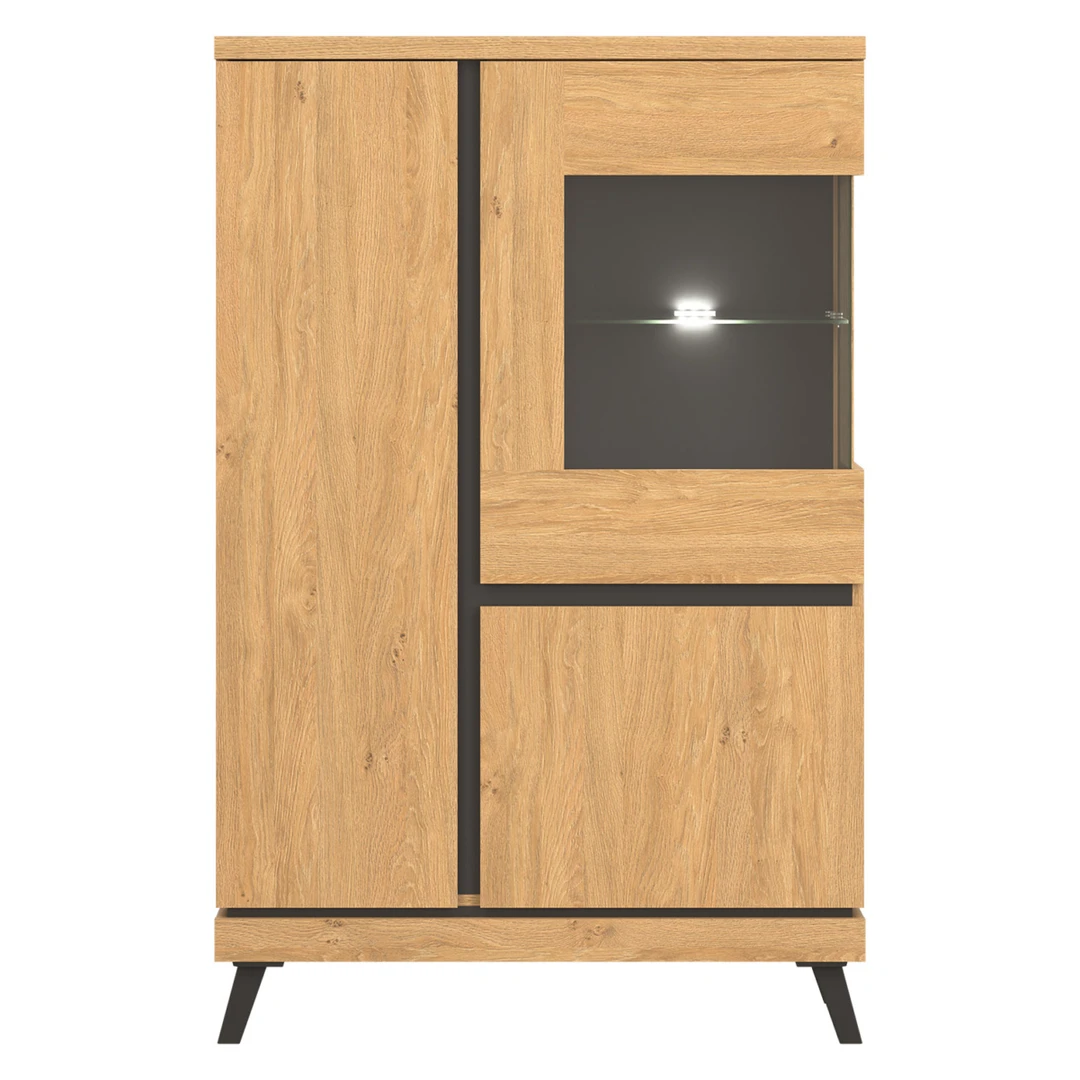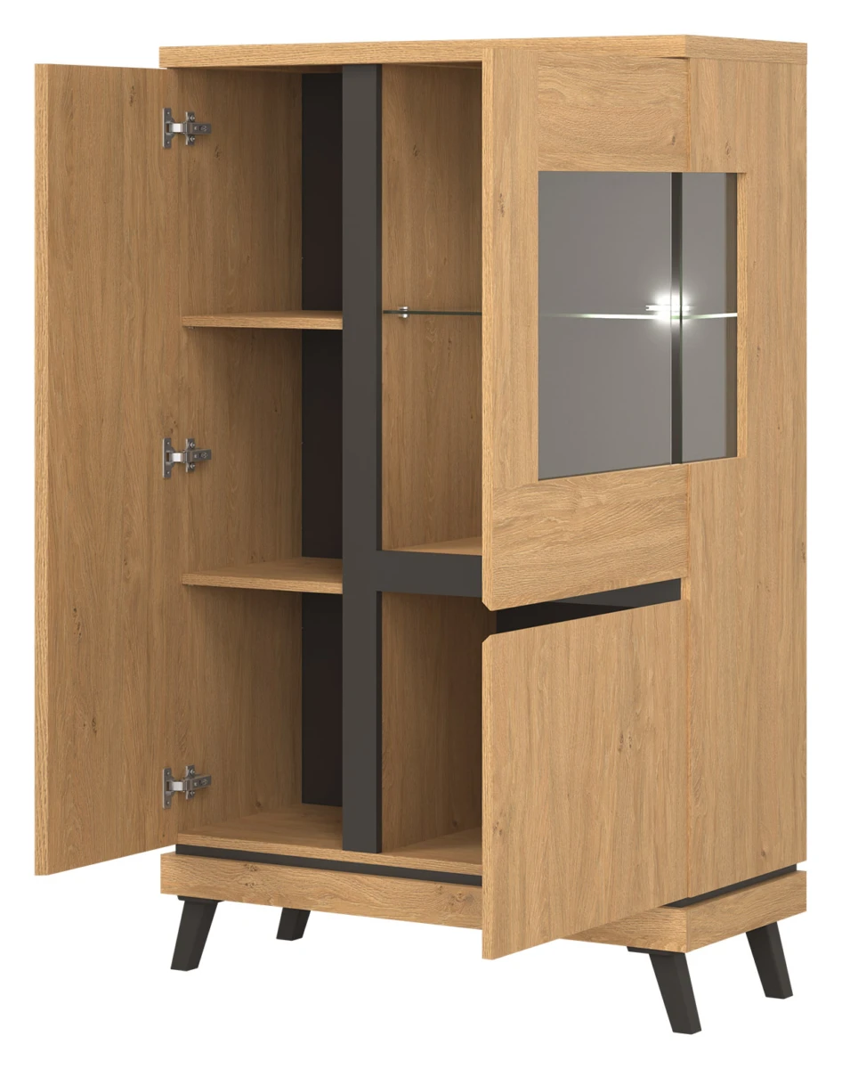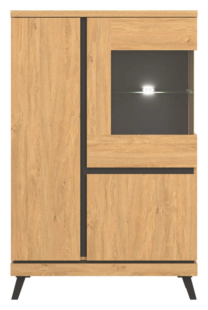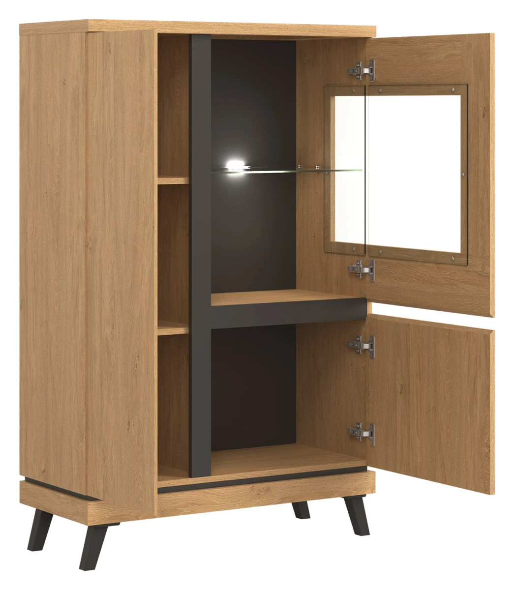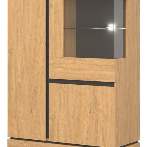 Aukštis/Plotis/Gylis: 144.5/91.5/39cm. Spalva: Akmeninis ąžuolas / Juoda.