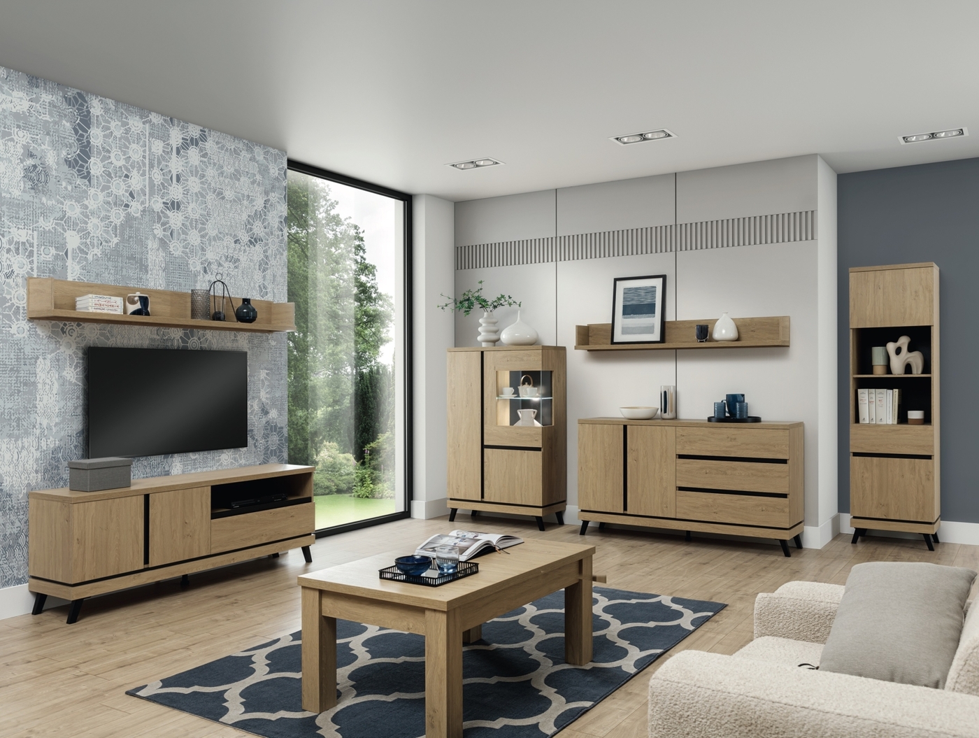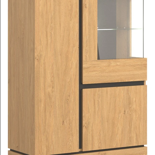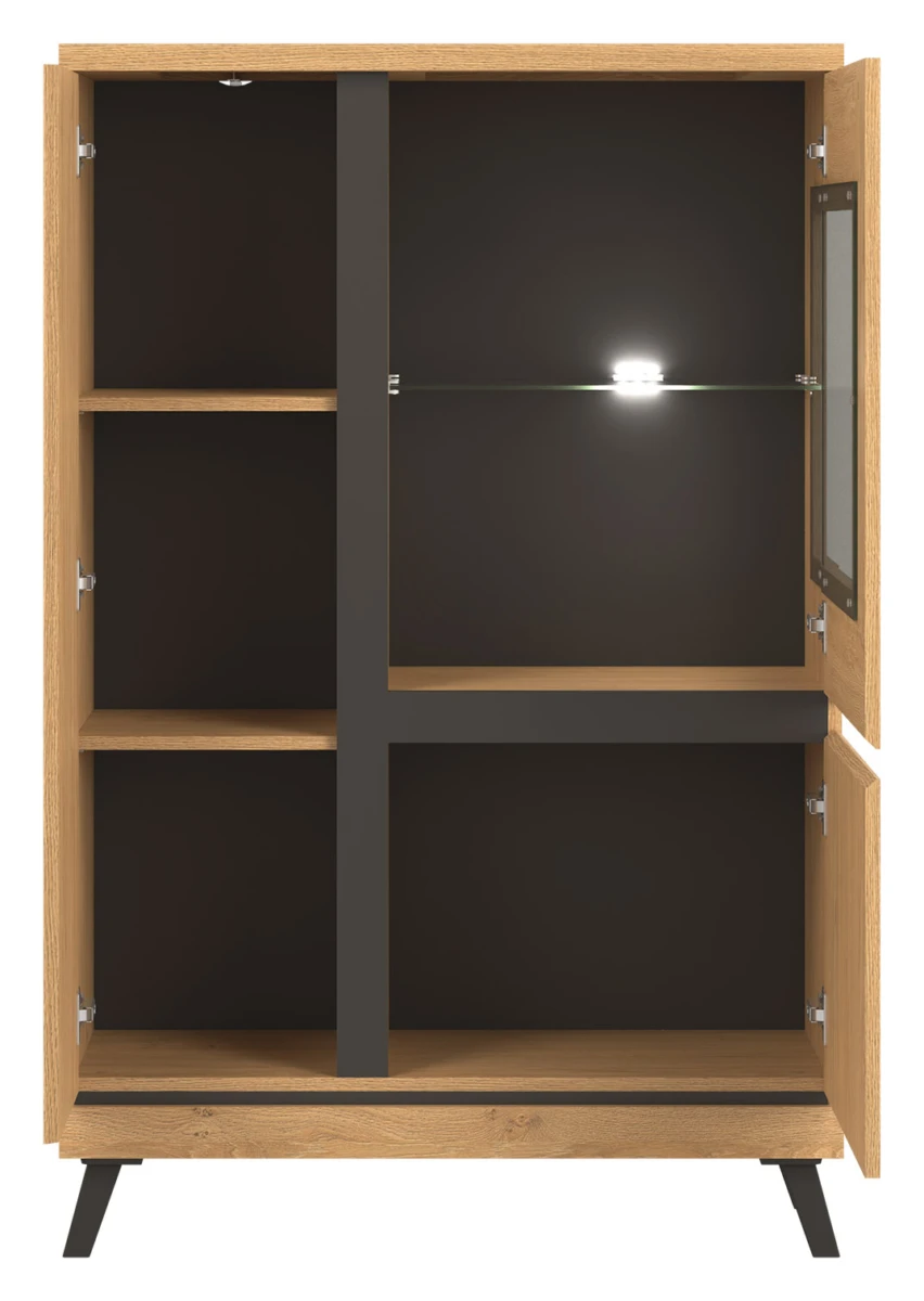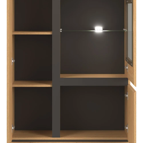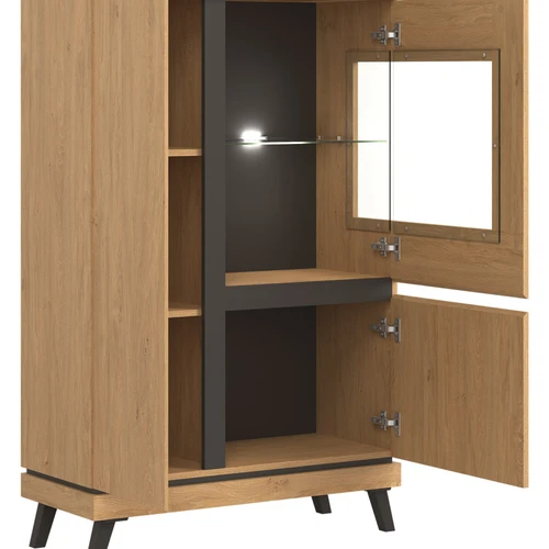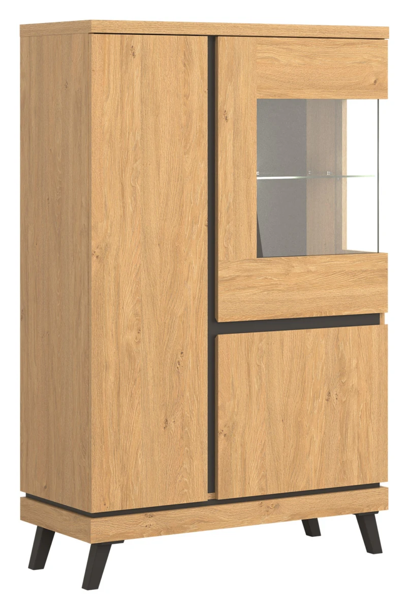 Aukštis/Plotis/Gylis: 144.5/91.5/39cm. Spalva: Akmeninis ąžuolas / Juoda.
