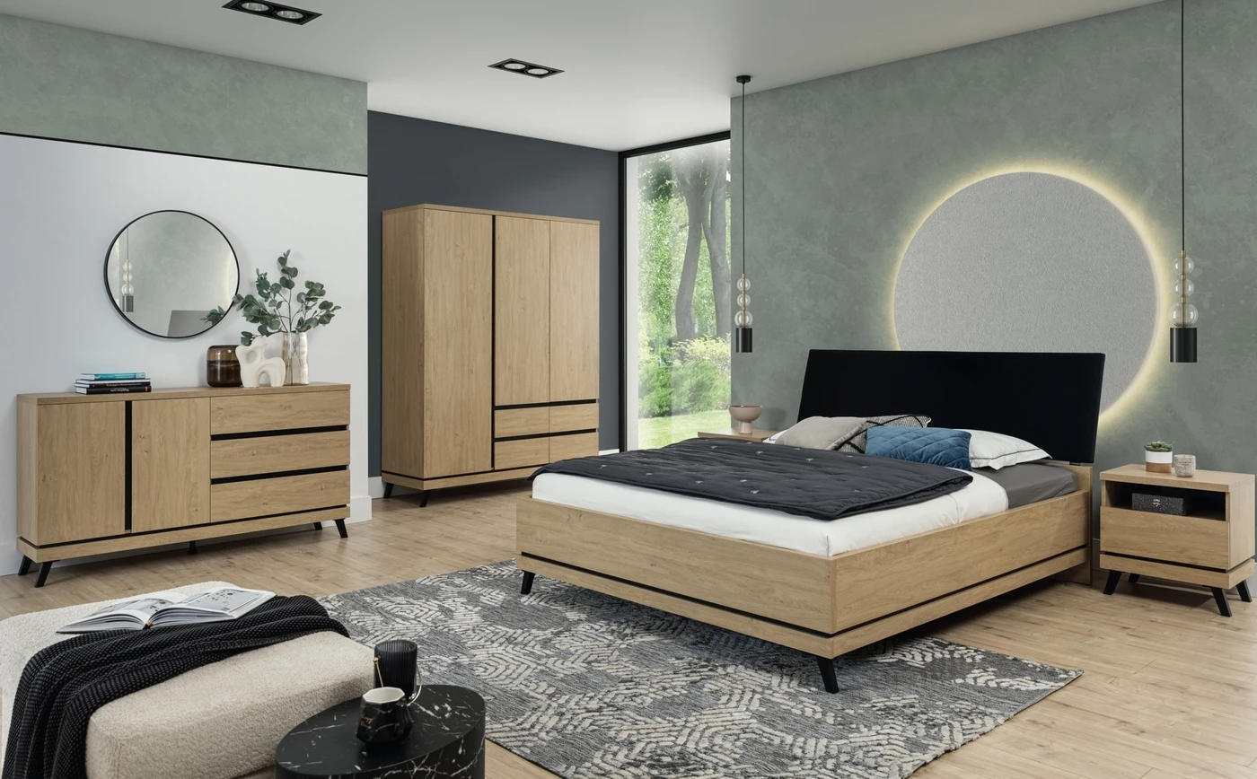 Aukštis/Plotis/Ilgis: 106/148/220cm. Spalva: Akmeninis ąžuolas / Juoda.