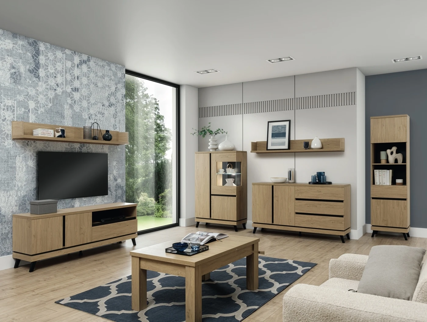 Aukštis/Plotis/Ilgis: 106/188/220cm. Spalva: Akmeninis ąžuolas / Juoda.