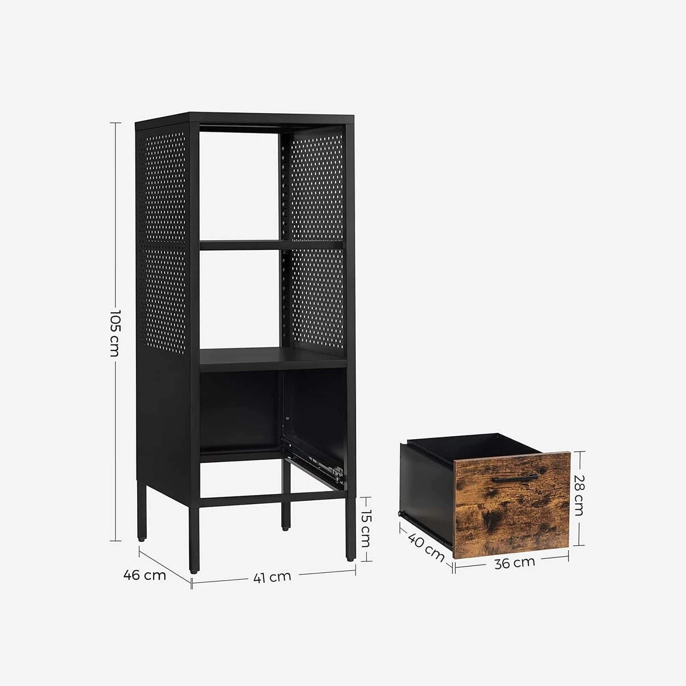 Aprašymas buvo automatiškai išverstas, gali pasitaikyti klaidų.Ieškote praktiškos kartotekų spintos? Tada! Aš esu jums tinkamas žmogus. Tinka svetainei, miegamajam ir biurui ir atstovauju patikimai saugykla jūsų knygoms, dokumentams ir kt. Ar turite geresnių idėjų? Išsami informacija apie gaminį: Spalva: vintažinė ruda-juodaMedžiaga: plienas, medžio drožlių plokštė Dydis: 41 x 46 x 105 cm (P x P x A) Svoris: 14,9 kg Maks. statinė paviršiaus apkrova: 50 kgMaks. vidurinės lentynos statinė apkrova: 20 kgMaks. Statinė stalčiaus apkrova: 20 kgPristatymo komplektas: 1 x kartoteka 1 x priedų pakuotė 1 x apsauga nuo apvirtimo 1 x instrukcijos SONGMICS Pastabos: Pritvirtinkite šį gaminį prie sienos su pridedamu apsaugos nuo apvirtimo elementu, kad jis neapvirstų.
