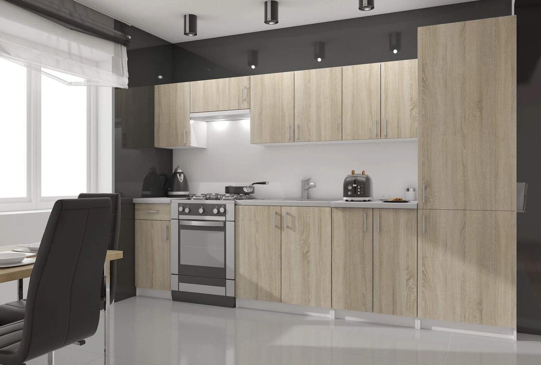 Aprašymas buvo automatiškai išverstas, gali pasitaikyti klaidų. Virtuvės stulpas – įdomus pasiūlymas virtuvės baldams, į kuriuos mažoje erdvėje telpa daug virtuvėje reikalingų aksesuarų. Indai, valymo priemonės, bakalėjos prekės – tai tik dalis prekių, kurios lentynose ras vietą pristatomoje virtuvės stulpelyje. Modernus baldas buvo sukurtas naudojant dvi labai madingas, bet kartu itin universalias spalvas – sonoma ąžuolinę ir baltą. Ryškios rankenos puikiai dera su šia spalvų schema, sukurdamos vientisą visumą. Stulpelis pagamintas iš trinčiai atsparios laminuotos plokštės. Tai vienas iš daugybės šioje kolekcijoje pateiktų pasiūlymų. Jų dėka savo svajonių virtuvėje galėsite sukurti gražią, bet visų pirma funkcionalią erdvę. Kviečiame susipažinti su mūsų pasiūlymais. Korpuso spalva - Balta Priekinė spalva - Sonoma ąžuolas - Durų viduje yra 5 lentynos - Spintelė pagaminta iš laminuotos plokštės, atsparios dilimui.