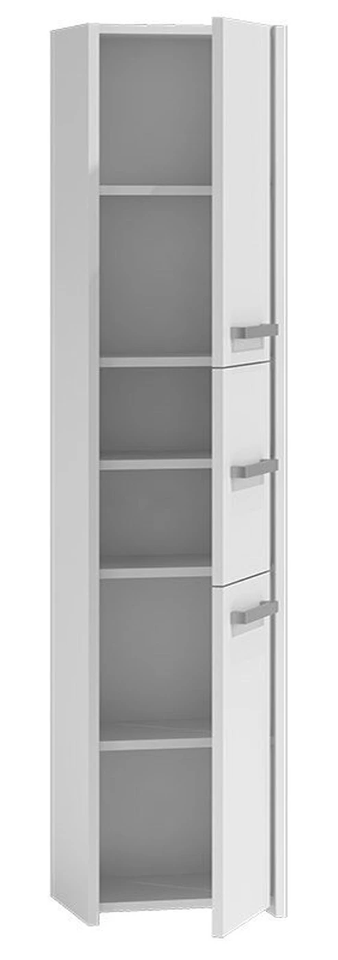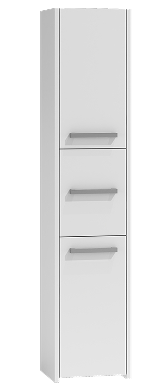 Trijų durelių, pastatoma vonios spintelė;Kiekvienų durelių viduje - po 1 lentyną, 2 skyrius;Minimalistinio stiliaus rankenėlės, tinkančios prie daugelio interjerų;Pagaminta iš: medžio drožlių plokštės (MDP), briaunos dengtos PVC danga;Surinkimo metu turėsite galimybę pasirinkti durelių varstymo kryptį;Išmatavimai: plotis - 40 cm, gylis - 30 cm, aukštis - 170 cm;Spalva: balta;