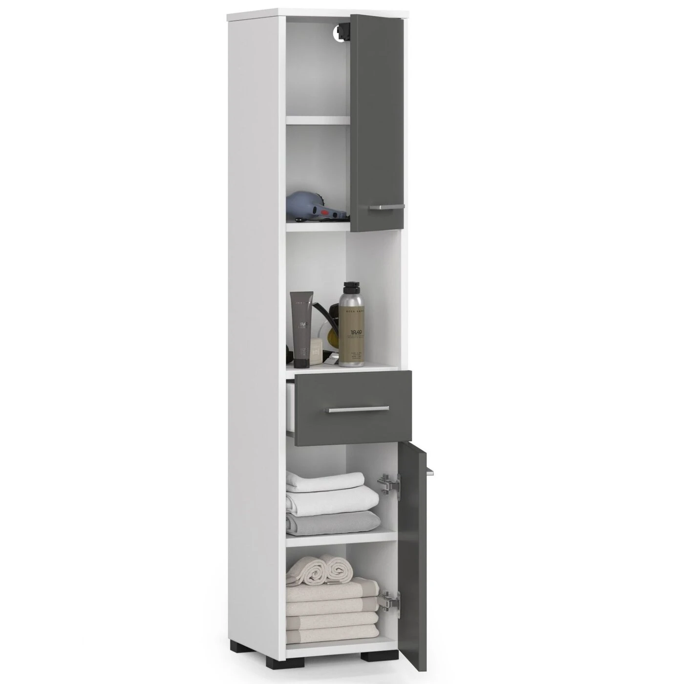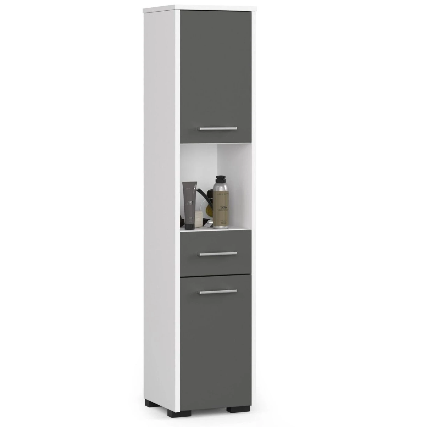 Aprašymas buvo automatiškai išverstas, gali pasitaikyti klaidų. Vonios lentyna, kurią galite rasti plačiame mūsų parduotuvės asortimente, padės sutvarkyti viso vonios kambario išvaizdą. Spintelė yra didelės talpos, nes ji turi: vieną lentyną, vieną ištraukiamą spintelę, li> keturios papildomos lentynos durų viduje. Dėl didelės spintelės talpos ji padės paslėpti visus vonios reikmenis ir aksesuarus. Tai bus idealus pasirinkimas tiek vonios kambariams, kurie gali pasigirti dideliu plotu, tiek ir šiek tiek mažesniems. Nebereikia netvarkingų skalbimo mašinų ar kriauklių – šis vonios stulpas padės jūsų vonios kambariui atrodyti gražiai ir estetiškai. Vonios spintelė pagaminta iš aukščiausios kokybės 16 mm laminuotos plokštės. Kad jūsų stulpas būtų apsaugotas nuo bet kokio apmušalo, jo kraštai buvo apklijuoti ABS apvadu. Vonios kambario lentyna yra madinga, baltos spalvos / grafito pilka spalva. Kita vertus, spintos durų rankenos yra universalios, sidabrinės spalvos. Taip pat verta paminėti, kad šios spintelės surinkimas yra itin paprastas, o instrukcijos yra pakuotėje.