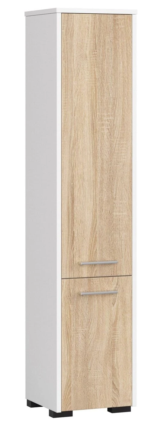 Aprašymas buvo automatiškai išverstas, gali pasitaikyti klaidų. Praktiškas vonios stulpas yra puikus sprendimas bet kokiam vonios kambariui. Jis ypač tinka mažoms patalpoms, kur bus galima laikyti kosmetiką, valymo priemones ar vonios tekstilę. Aukšta baldų estetika derinama su ilgaamžiškumu ir dideliu atsparumu pažeidimams. Vonios lentynoje Fin yra dvi rakinamos spintelės. Baldai yra nesenstančios baltos ir madingos sonomos ąžuolo spalvos derinys. Galite laisvai pasirinkti kitus vonios kambario baldus iš tos pačios kolekcijos. Spintelė yra pagaminta iš aukštos kokybės Kronospan laminuotos plokštės; Lenta yra 16 milimetrų storio; Knygų spinta susideda iš dviejų uždarų lentynų, viršutinėje yra trys erdvios lentynos, o apatinėje; Vonios kambario baldų kraštai buvo padengti ABS apvadu, kad būtų gerai apsaugoti; Durų rankenos yra sidabrinės; Spintelė skirta savarankiškam surinkimas; Pakuotėje yra reguliuojamos pakabos, skirtos stovui pakabinti, ir kojelės, skirtos stulpeliui pastatyti ant grindų; Komplekte yra surinkimo instrukcijos; gaminio garantija yra iki dvidešimt keturių mėnesių.