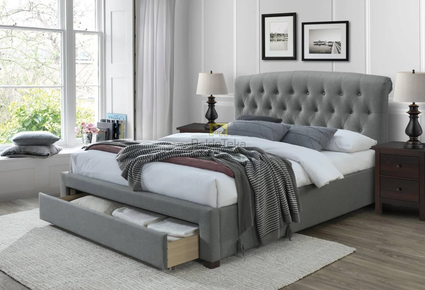 Su grotelėmis, su patalynės dėže, be čiužinio.