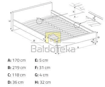 Lovos rėmo Ilgis/Plotis/Aukštis – 219/170/118 cm.