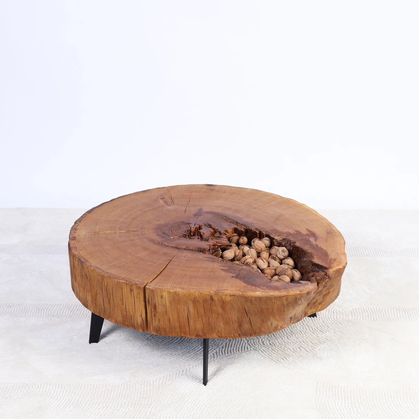 Ąžuolo masyvo kavos staliukai, balinto ir natūralaus Ąžuolo, su metalinėmis kojelėmis.