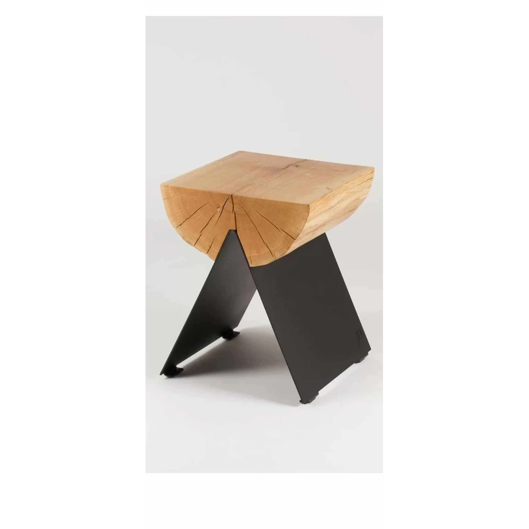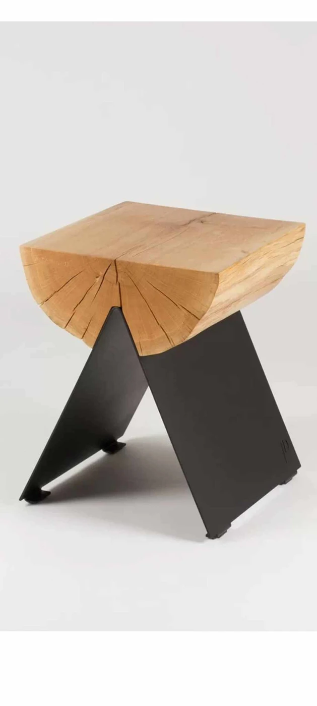 Ąžuolinis suoliukas, kėdutė su metaline koja,