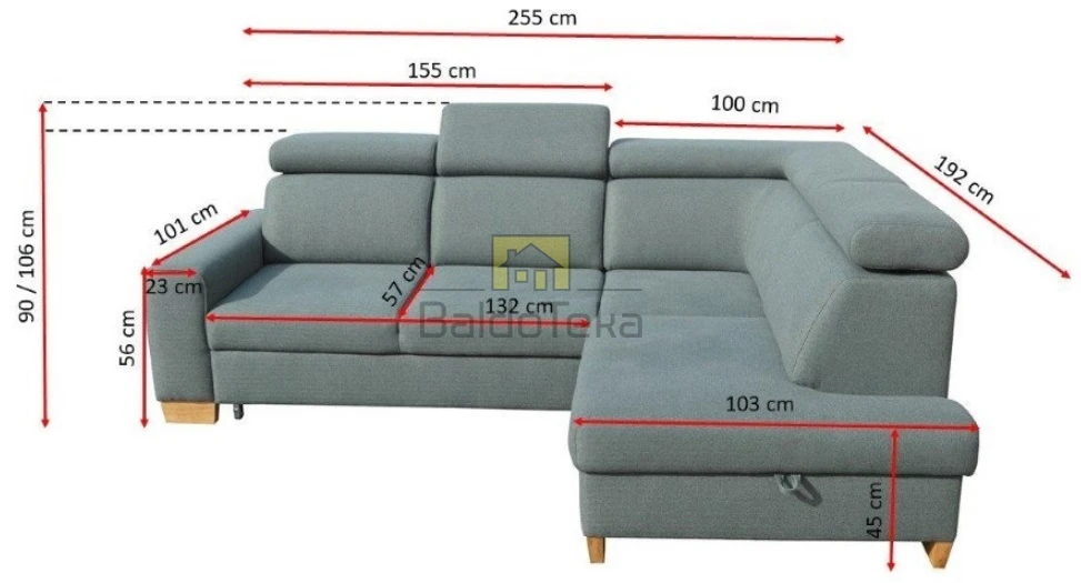 Plotis/Gylis/Aukštis: 192×255/101/90-106 cm.
