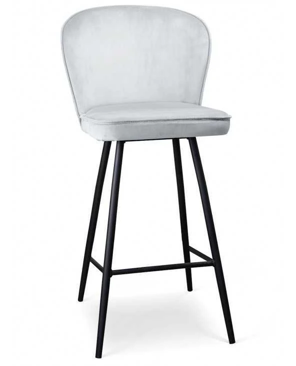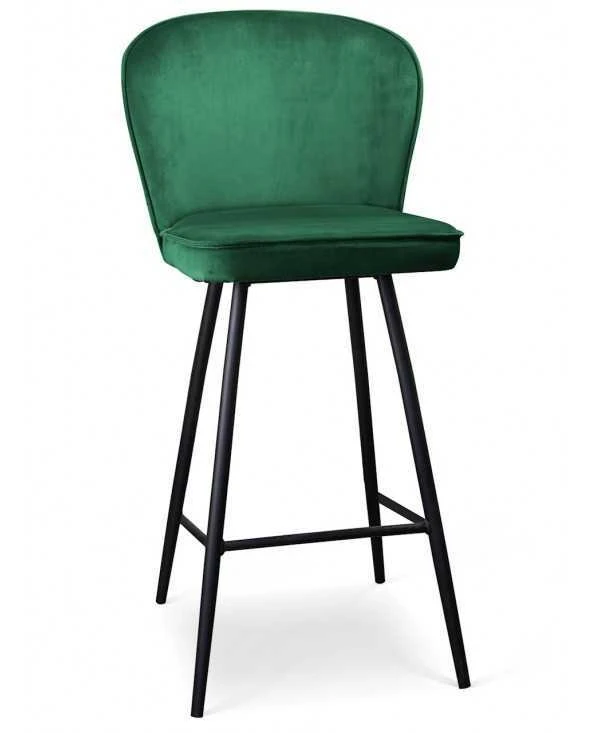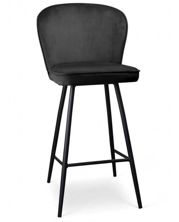Kėdė aptraukta pūkuoto aksomo audiniu, juodos metalinės kojos.