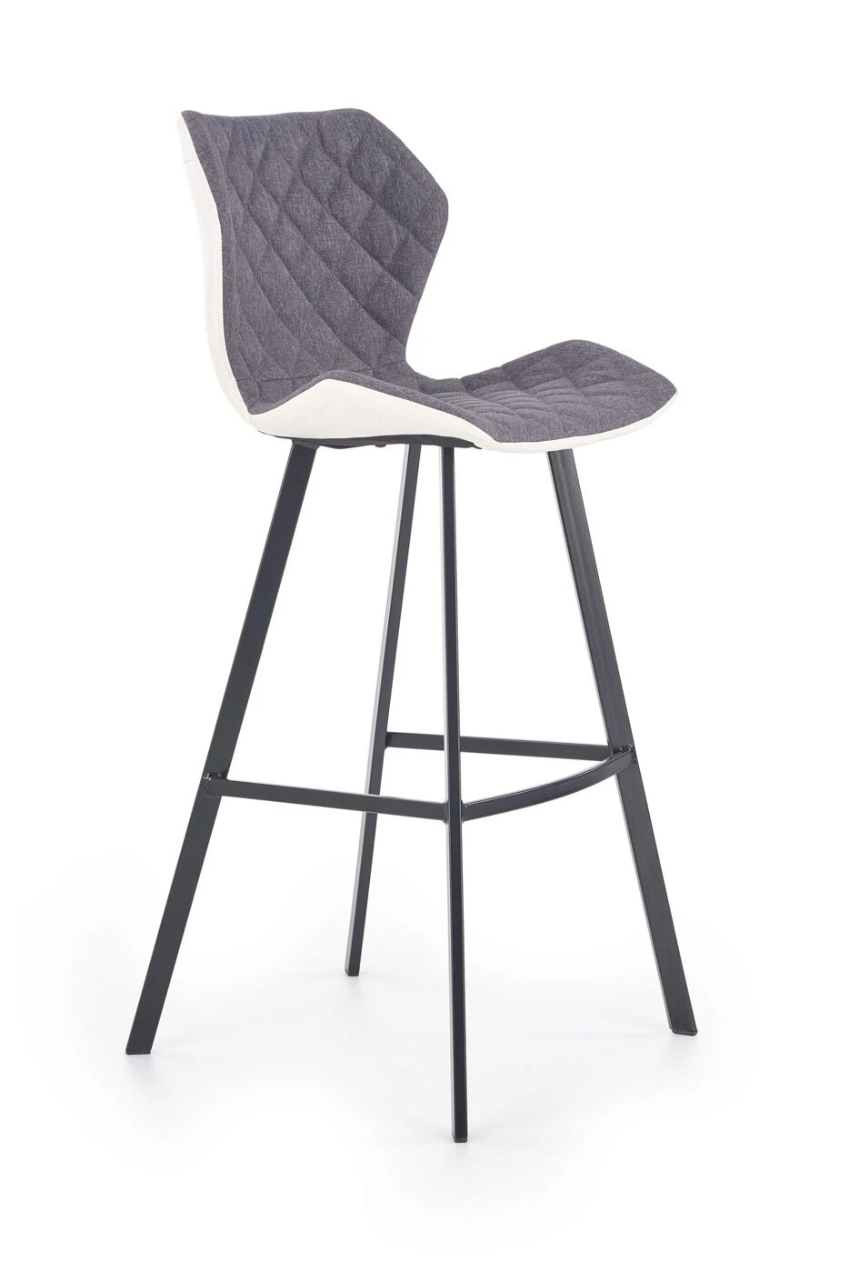 Patogi ir kokybiška baro kėdė su tvirtomis milteliniu būdu dažyto plieno kojomis ir eko oda bei audiniu dengta sėdimąja dalimi.