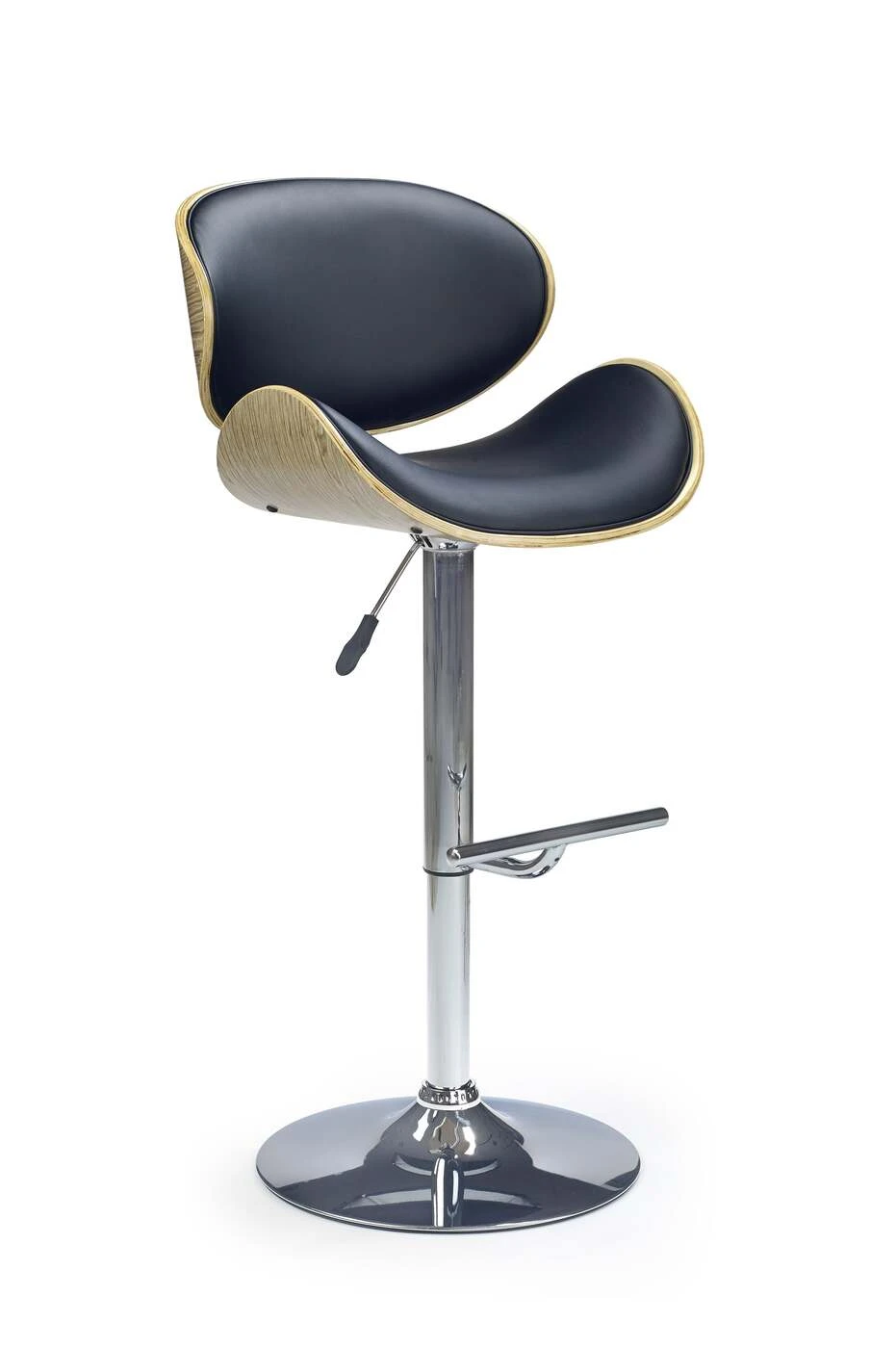 išmatavimai: 53/48/93÷115 cm, medžiaga: chromuotas plienas / lenkta fanera / eko oda, spalva: medis - šviesus ąžuolas, eko oda - juoda