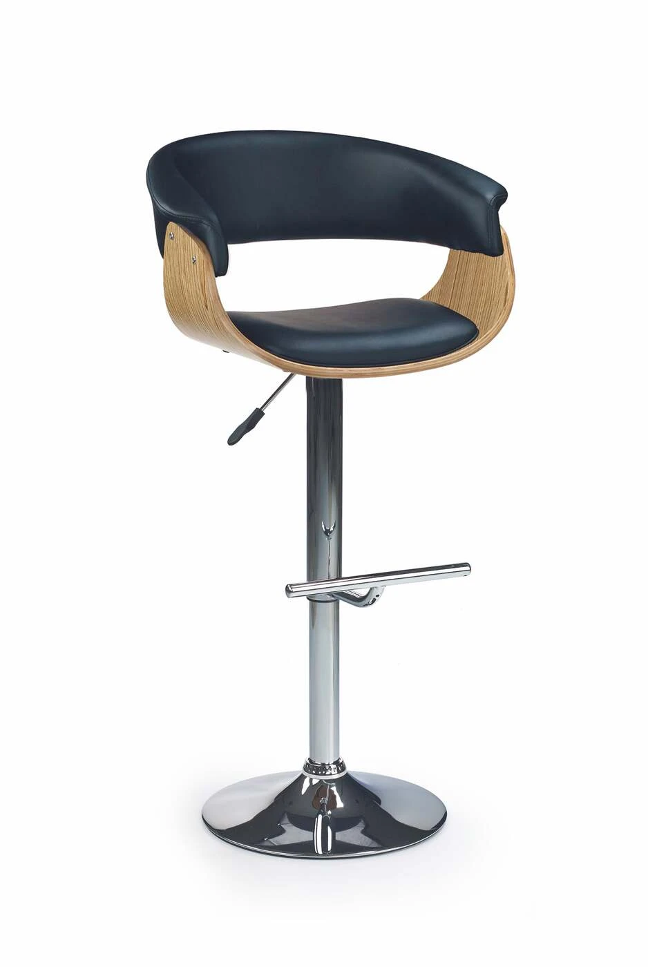 išmatavimai: 59/46/90÷112 cm, medžiaga: chromuotas plienas / lenkta fanera / eko oda, spalva: medis - šviesus ąžuolas, eko oda - juoda