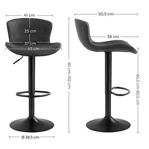 Aprašymas buvo automatiškai išverstas, gali pasitaikyti klaidų.Eik į barą! Ar per daug dirbote per pastarąsias kelias savaites? Tada išnaudokite savaitgalį ir atsisėskite su geru draugu! Geriausias būdas tai padaryti – prie aukšto stalo, kuris nuo šiol spindės šiomis akį traukiančiomis baro kėdėmis. Ergonomiškos formos sėdynės apvalkalas ir praktiška atrama kojoms užtikrina aukštą sėdėjimo komfortą, kad apie senus laikus būtų galima kalbėti iki vėlyvo vakaro. aukštis be pakopų ir be problemų, mes naudojame specialų didelio našumo automatinį grįžtamąjį cilindrą. Jie buvo išbandyti SGS ir atitinka BIFMA X5.1 standartą (bandymo ataskaitos Nr.: AJHL200400841FT; savininkas: tiekėjas).Informacija apie gaminį: Spalva: Juoda Medžiaga: PU dirbtinė oda, putplastis, plienas Bendras dydis: 45 x 50,5 x (82-102) cm (P x P x A) Sėdynės aukštis: 60,5-80,5 cm Sėdynės Plotis cm: 45 cm Gylis Sėdynės: 38 cm Atlošo matmenys: 41 x 25 cm (I x P) Pagrindo skersmuo: 38,5 cm Vienos baro kėdės svoris: 6,8 kg Maks. Vienos baro kėdės statinė apkrova: 120 kg Pristatymo komplektas: 2 x baro kėdės 2 x priedų pakuotė 1 x instrukcijos (DE, EN, FR, ES, IT) SONGMICS Pastabos: Saugumo sumetimais vaikams neleidžiama lipti ant produktą arba žaisti su juo.