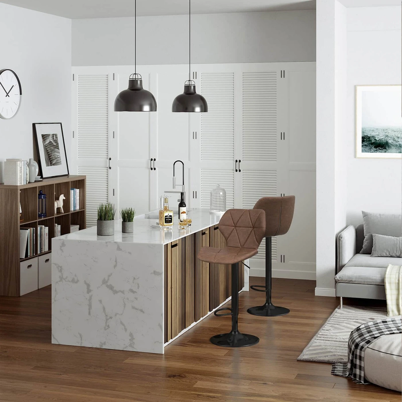 Aprašymas buvo automatiškai išverstas, gali pasitaikyti klaidų.Pasitaikyk! Ar per daug dirbote pastarosiomis savaitėmis? Tada išnaudokite savaitgalį ir atsisėskite su geru draugu! Geriausias būdas tai padaryti yra prie baro stalo, kuris nuo šiol spindės šiomis akį traukiančiomis baro kėdėmis. Ergonomiškos formos sėdynės apmušalas ir praktiška atrama kojoms užtikrina aukštą sėdėjimo komforto lygį, kad apie senus laikus būtų galima kalbėti iki vėlumos.Kad šios kėdės nesvyruotų, o sėdynės aukštį galėtumėte reguliuoti be pakopų ir be problemų, naudojame ypač patvarų automobilį -Grąžinimo cilindras. Juos išbandė SGS ir jie atitinka BIFMA X5.1 standartą (bandymo ataskaitos Nr.: AJHL200400841FT; savininkas: tiekėjas).Išsami informacija apie gaminį: Spalva: Tamsiai ruda - Medžiaga: PU dirbtinė oda, metalas - Gaminio matmenys: Bendras dydis: 48 x 52 x (90-112) cm (I x P x A) Sėdynės aukštis: 57-79 cm Sėdynės Plotis cm: 35 cm Sėdynės gylis: 39 cm Atlošo aukštis: 33 cmAtlošo Plotis cm: 43 cm Kojų atramos aukštis: 20-42 cmPagrindo skersmuo: 41 cm- Svoris: 6,2 kg- Maks. statinė apkrova: 120 kg- Pakuotės turinys: 2 Baras x Priedų paketas- 1 x vadovas (DE,EN,ES,FR,IT)SONGMICS Pastabos:- Saugumo sumetimais vaikams draudžiama lipti ant gaminio ar žaisti su juo.